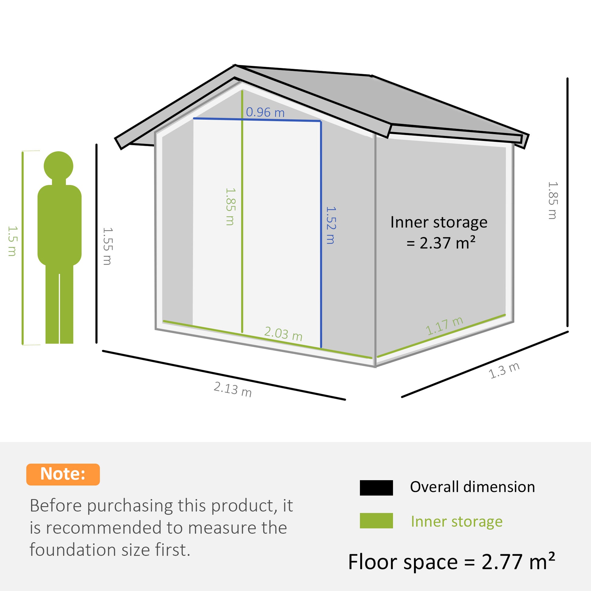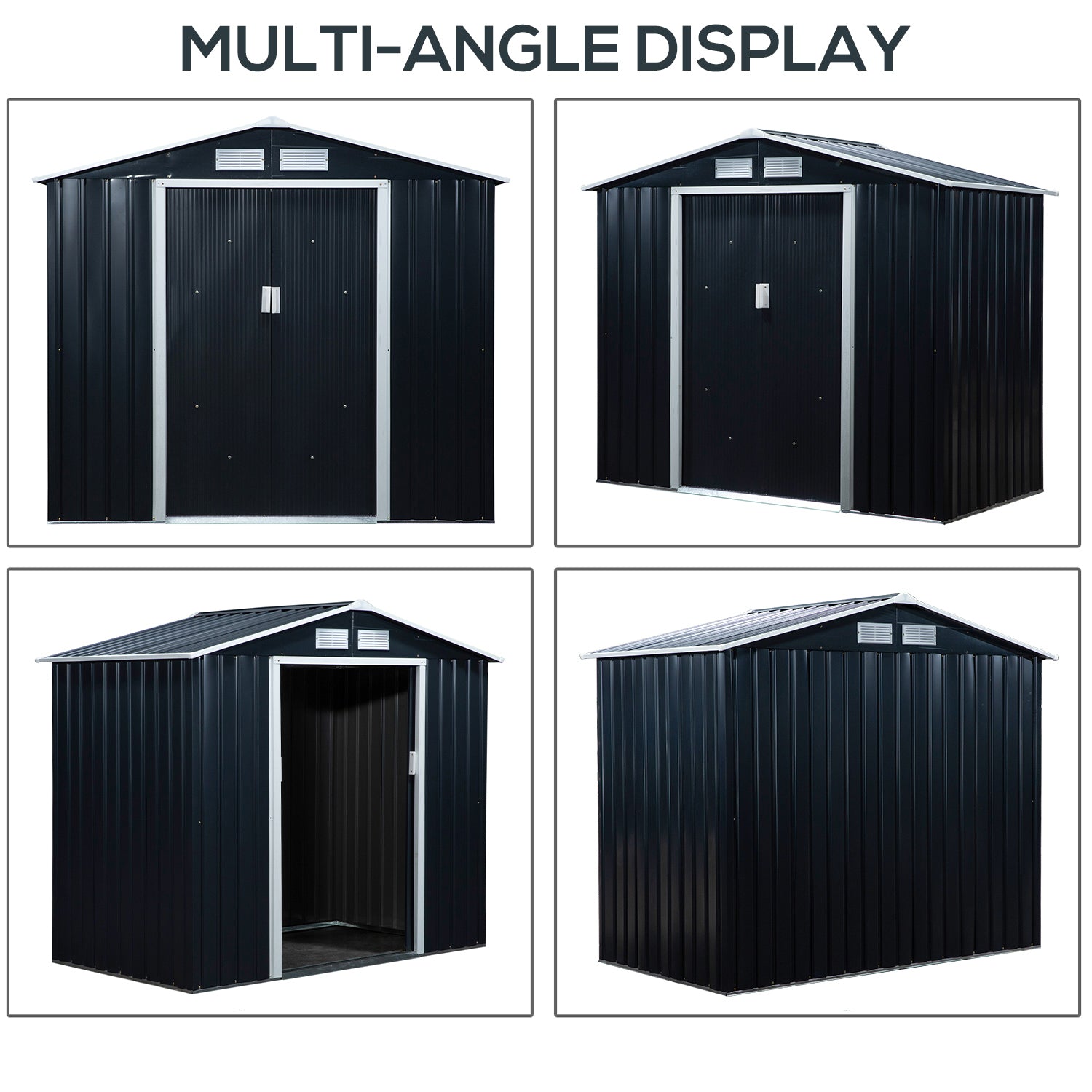 Outsunny Lockable Garden Shed Large Patio Roofed Tool Metal Storage Building Foundation Sheds Box Outdoor Furniture, 7ft x 4ft, Dark Grey