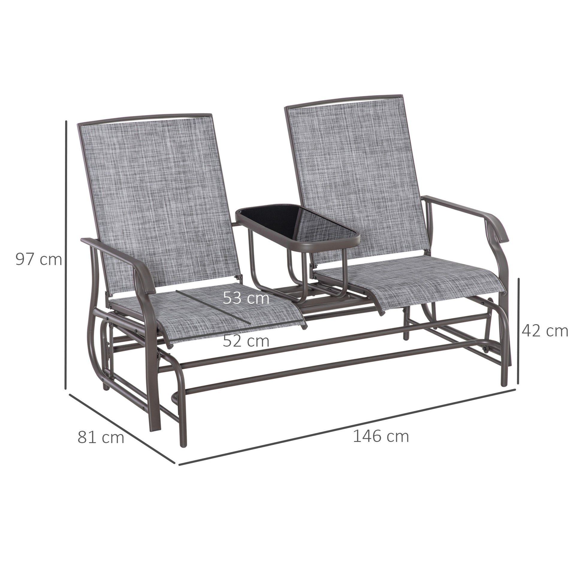 Outsunny Metal Double Swing Chair Glider Rocking Chair Seat Outdoor Seater Garden Furniture Patio Porch With Table