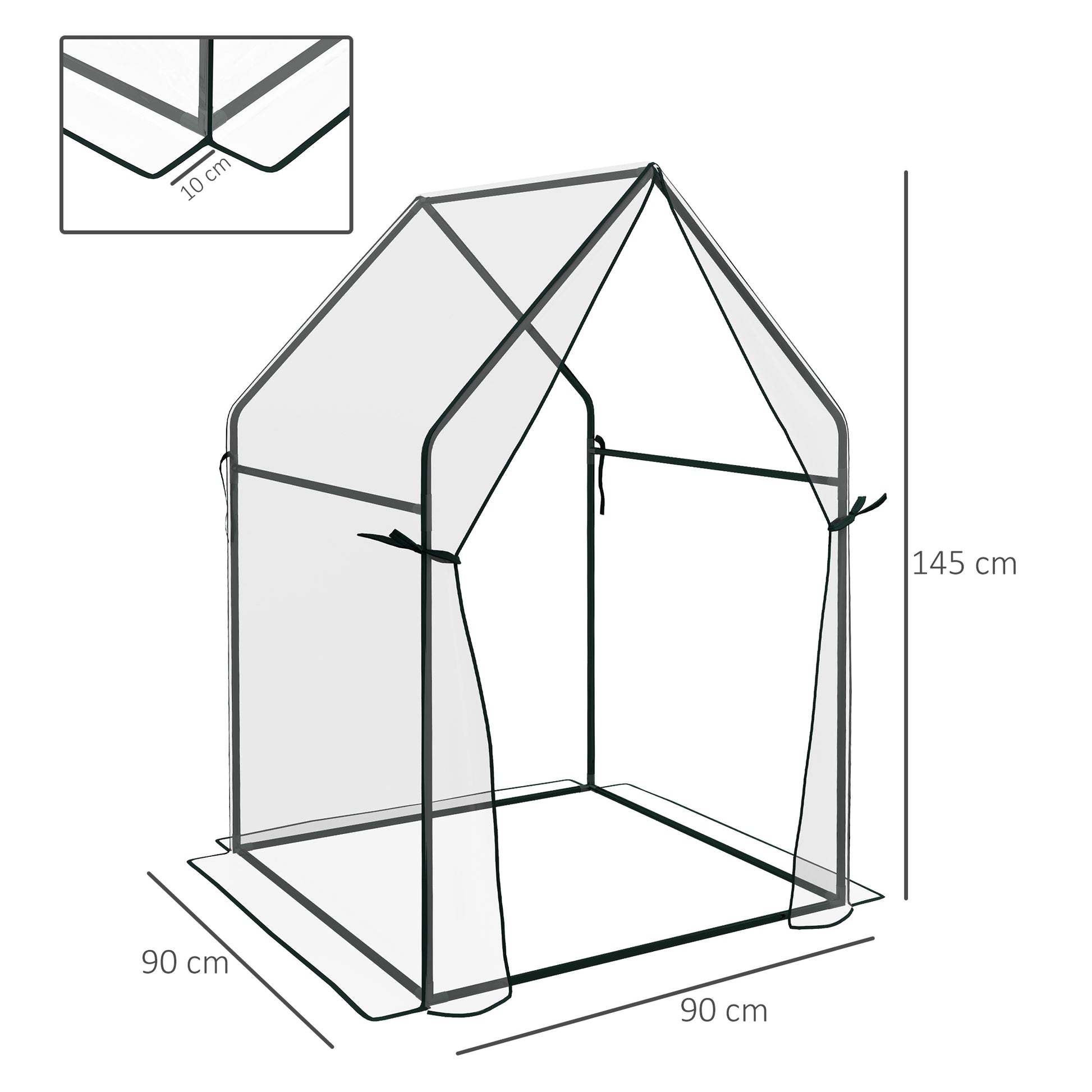 Outsunny Mini Greenhouse, Garden Tomato Growhouse with 2 Zipped Doors, Portable Indoor Outdoor Green House, 90 x 90 x 145cm, Clear
