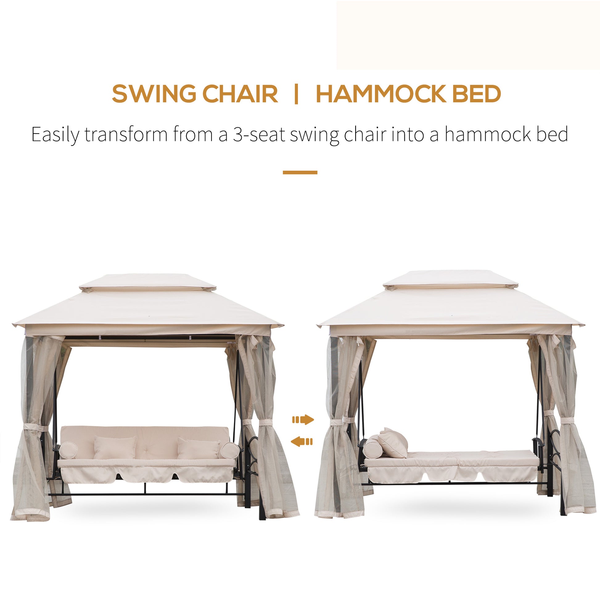 Outsunny Outdoor 2-in-1 Convertible Swing Chair Bed 3 Seater Porch With Nettings