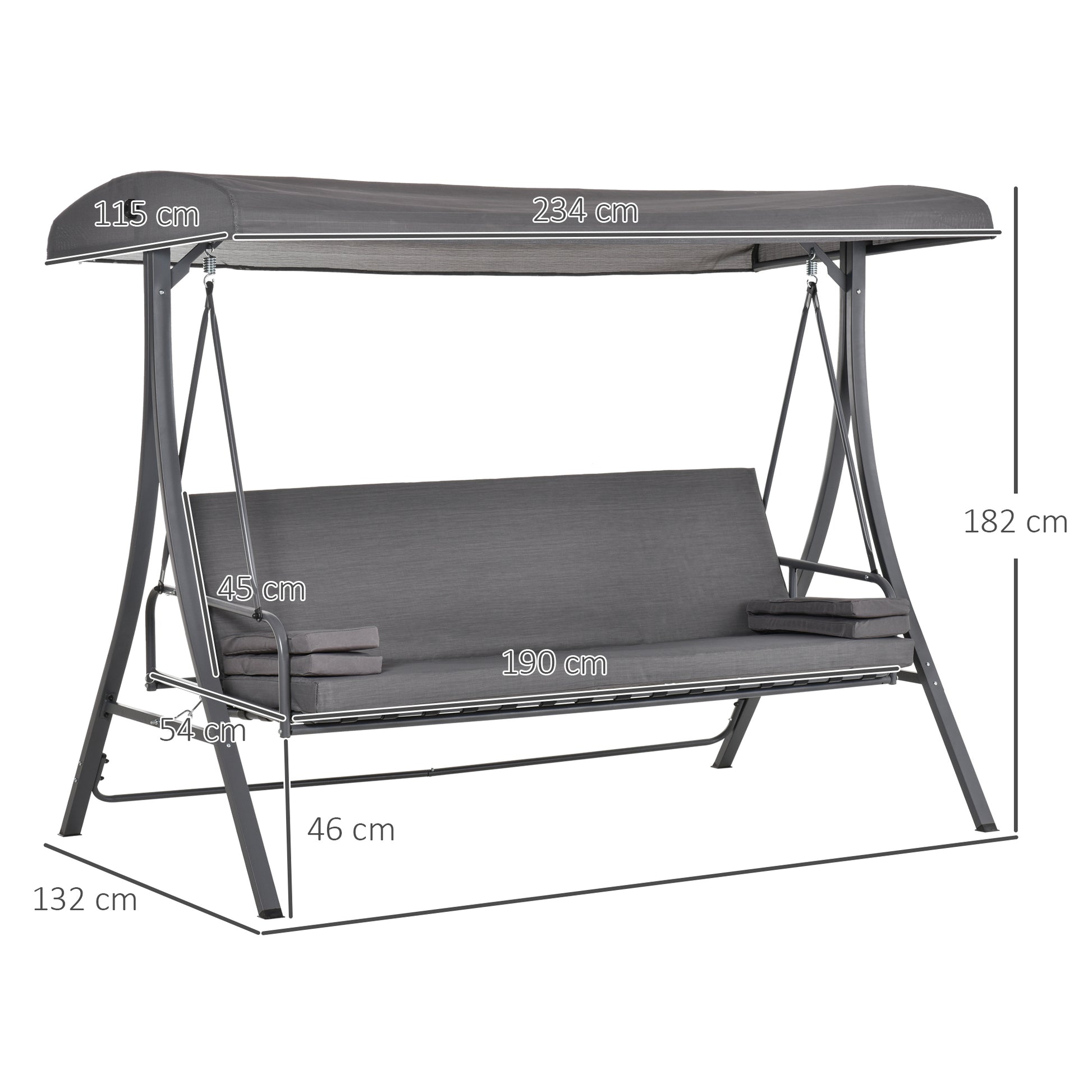 Make the most of the sunny days with this 2-in-1 convertible swing chair from Outsunny. Big enough to fit three people, it easily converts into a bed with an adjustable backrest to suit you and a canopy to protect you from the hot sun. It sits on a steel frame for stability and reliability. The cushion and two pillows supplied to provide even more comfort, there’s no better way to enjoy sitting down and relax than the sunshine on a hot summer's day.