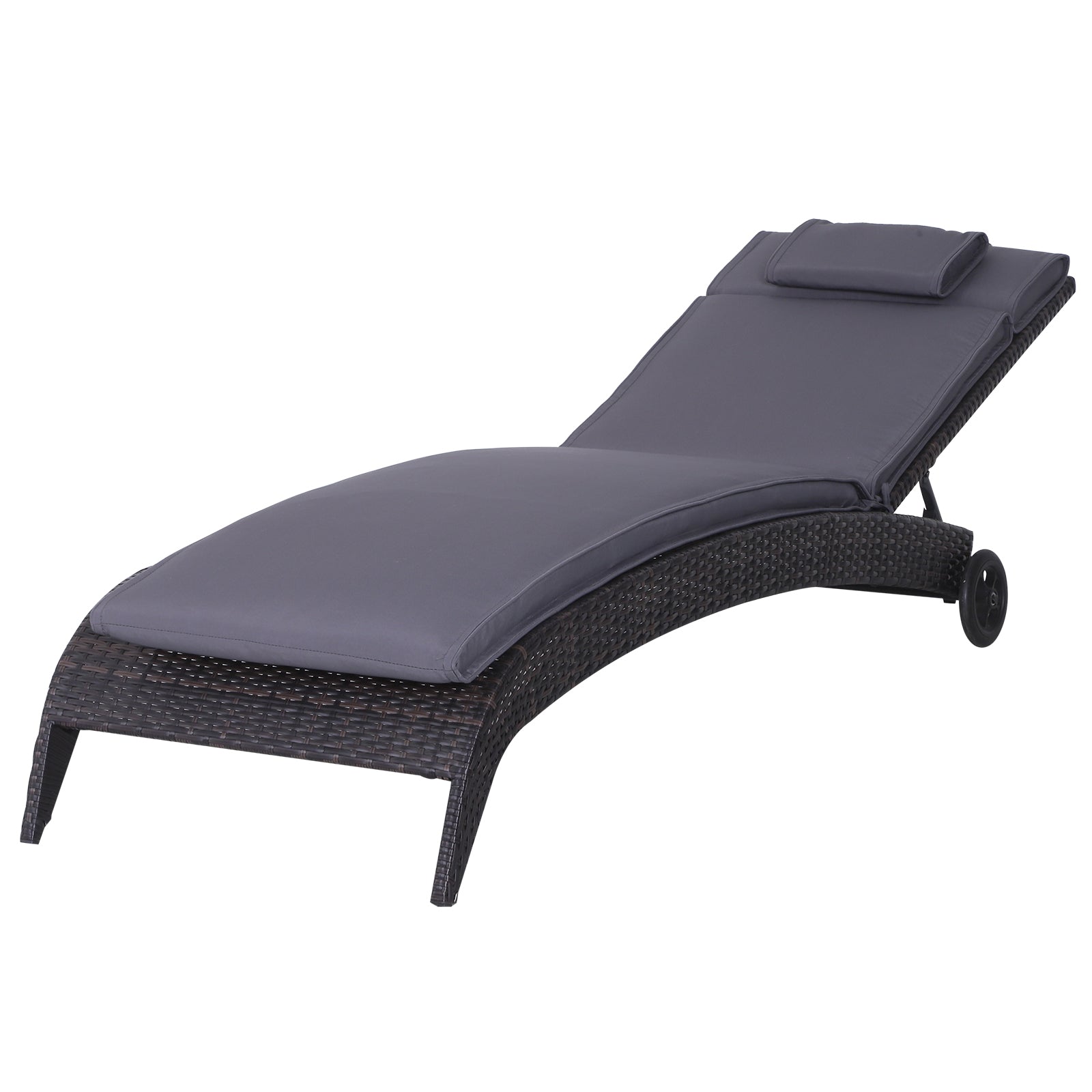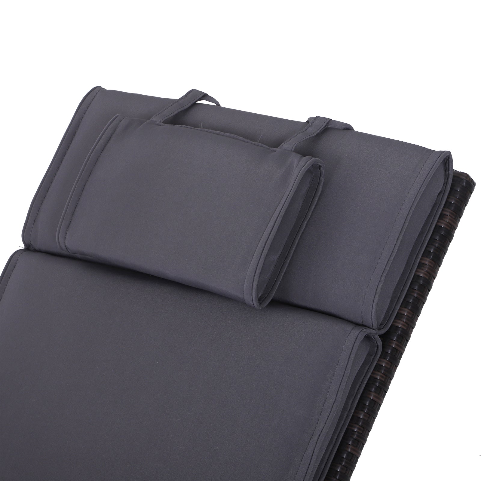 Outsunny Outdoor Chair Cushions Garden Sun Lounger Cushion Replacement Thick Sunbed Reclining Chair Relaxer Pad with Pillow - Grey