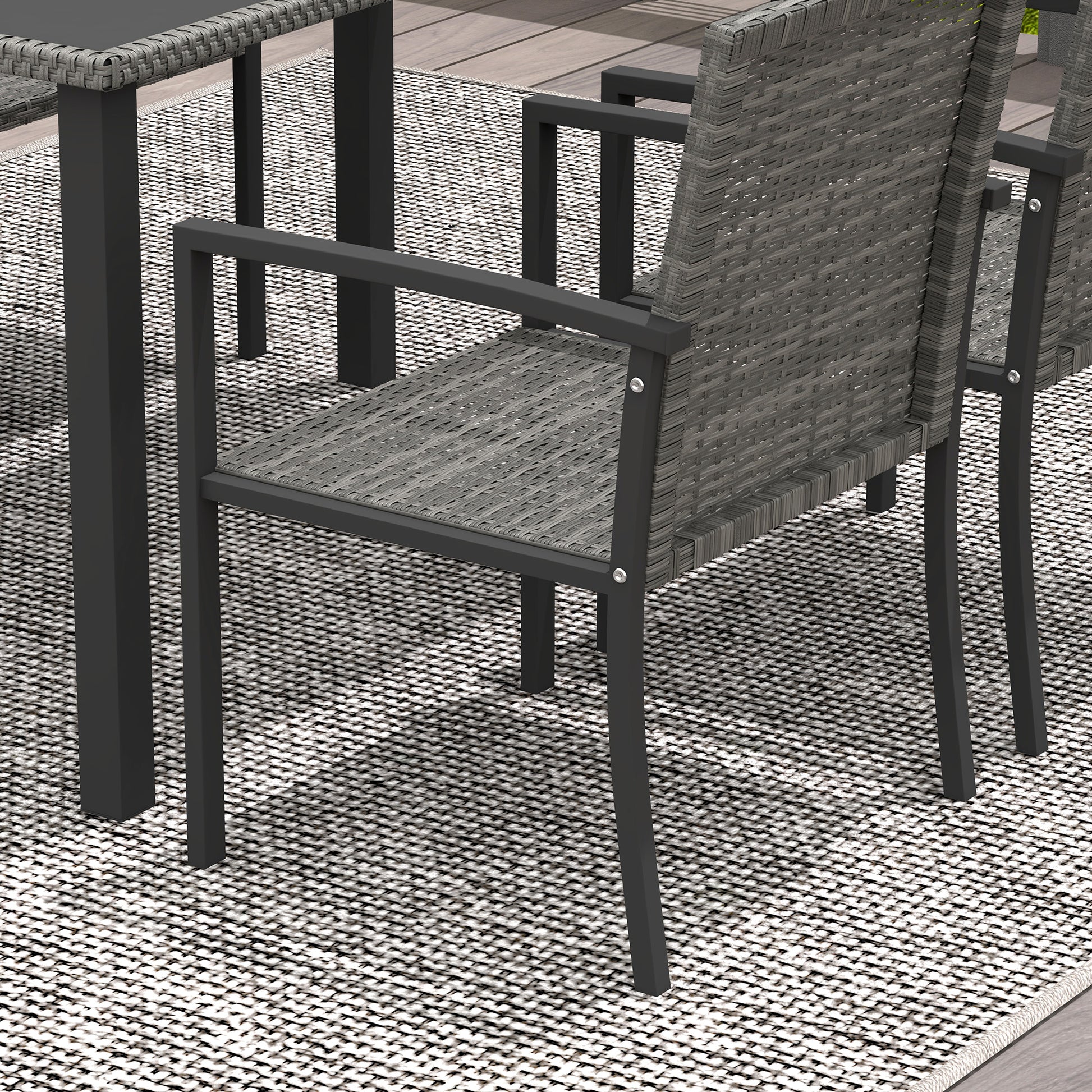 This Outsunny four-seater outdoor dining set is for every garden and patio. Four rattan-seated chairs and table is great for you and your favourite people to sit together. The glass-top of the table can be wiped clean quickly: a safe dining surface. Galvanised steel frames for strength. Plastic wicker woven into a rattan design: an on-trend garden look, for this season and beyond.