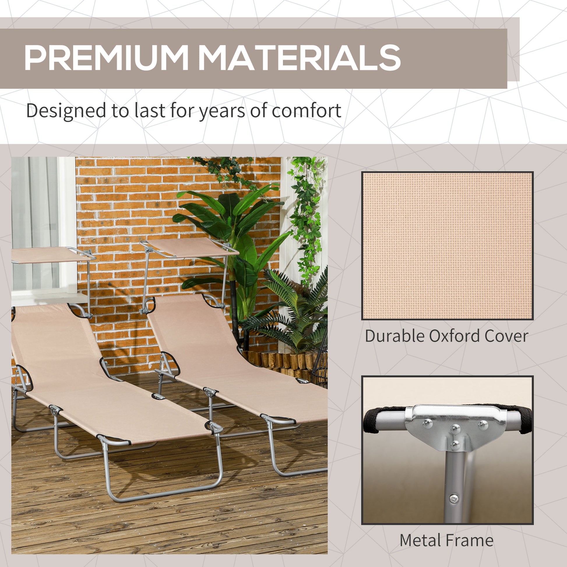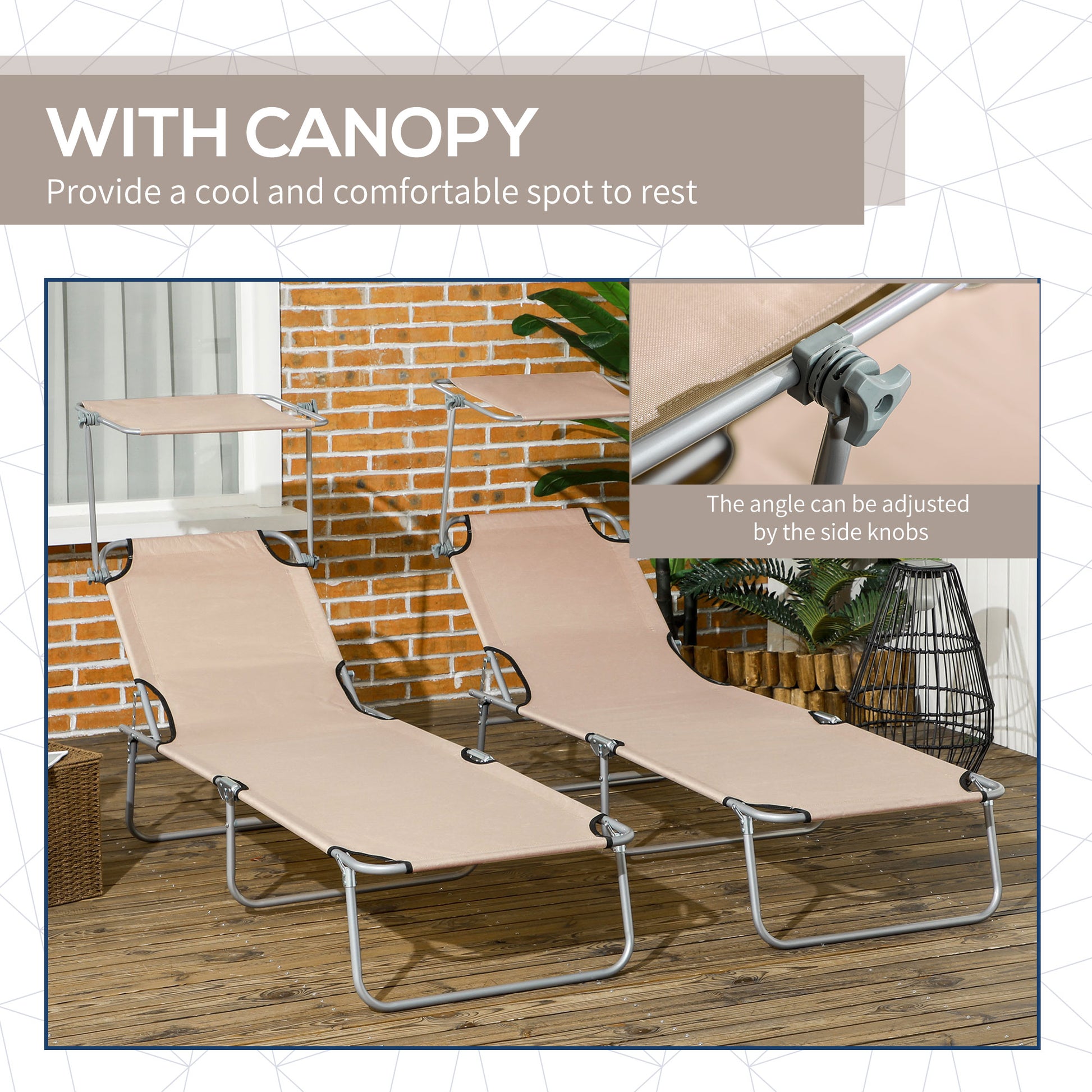 Outdoor Foldable Sun Lounger Set of 2 Reclining Sun Lounger Chair With Angle Adjust Sun Shade Awning for Beach, Garden, Patio, Brown