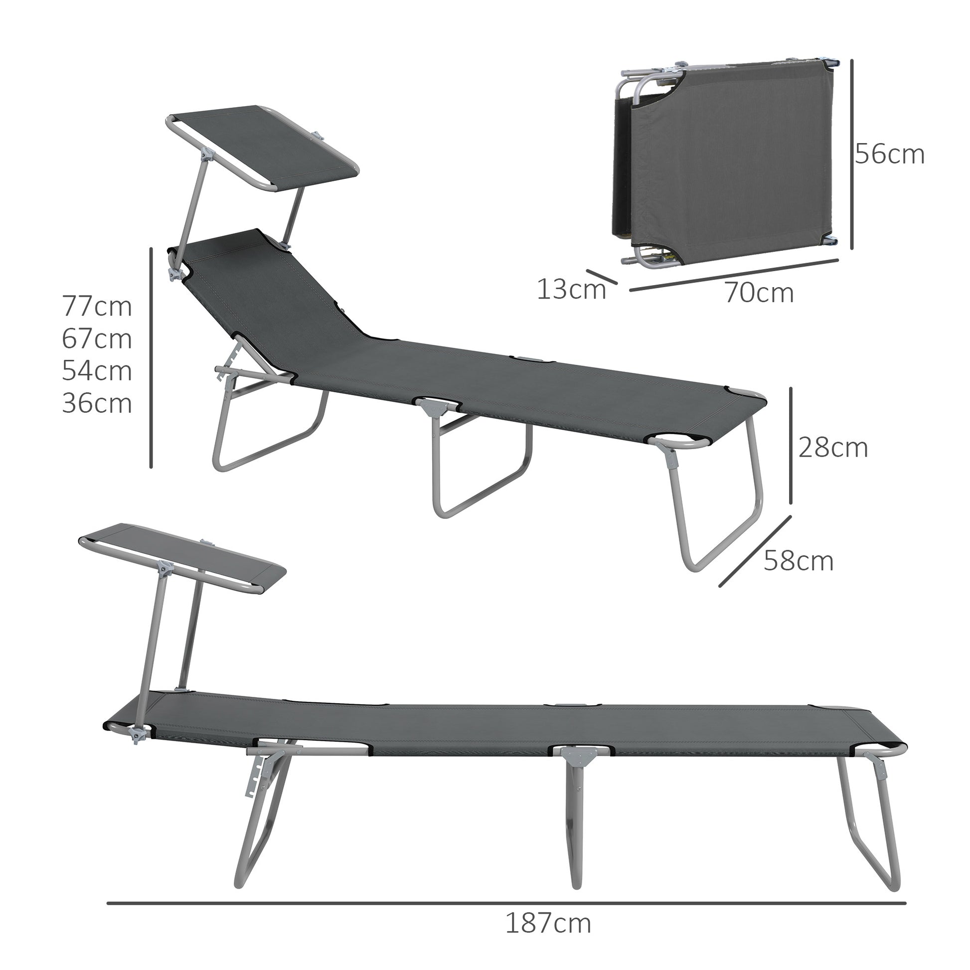 This reclining sun lounger from Outsunny not only keeps you comfortable, but keeps your head safely protected. It's fitted with a moving and removable canopy to shield against the sun and light rain - reducing the risk of heatstroke and getting wet. The back is adjustable to four different levels, to lie back to an angle you like. And when done, simply fold the metal frame and store away.