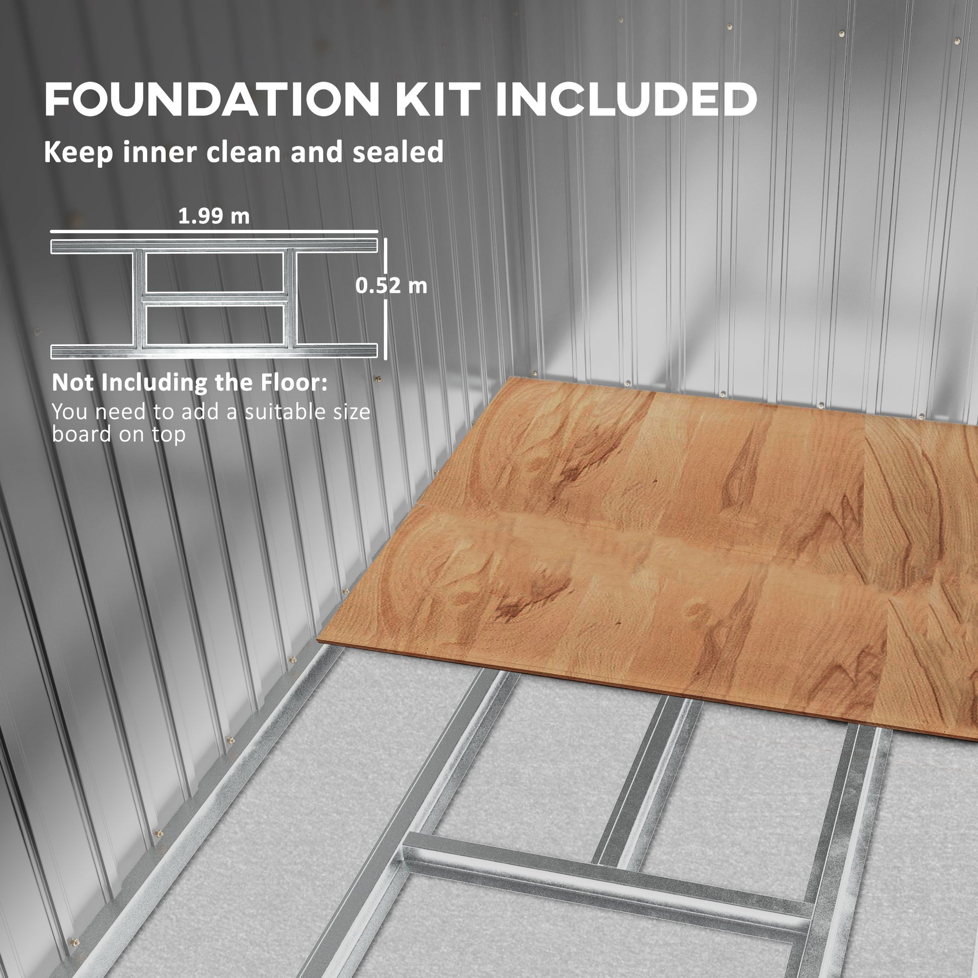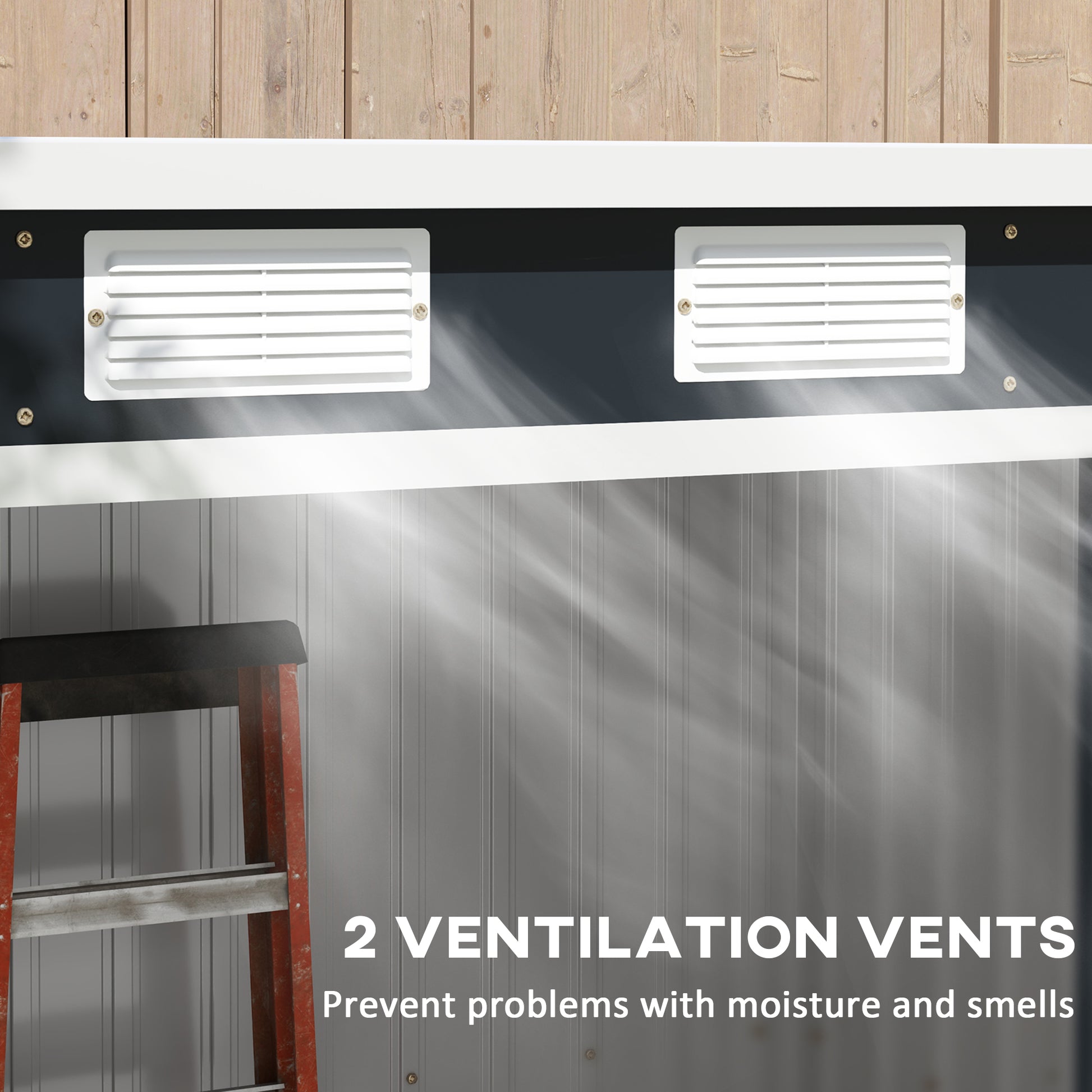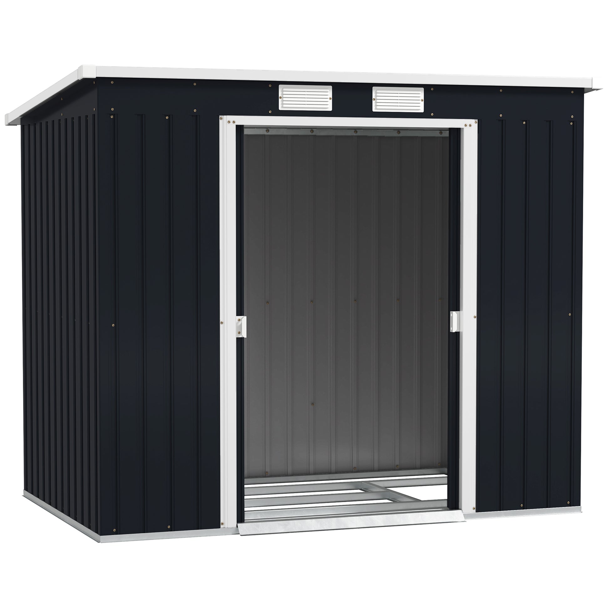 Outdoor Lean to Garden Metal Equipment Tool Storage Shed w/ Foundation Kit, Double Door, Vents and Sloped Roof, Dark Grey
