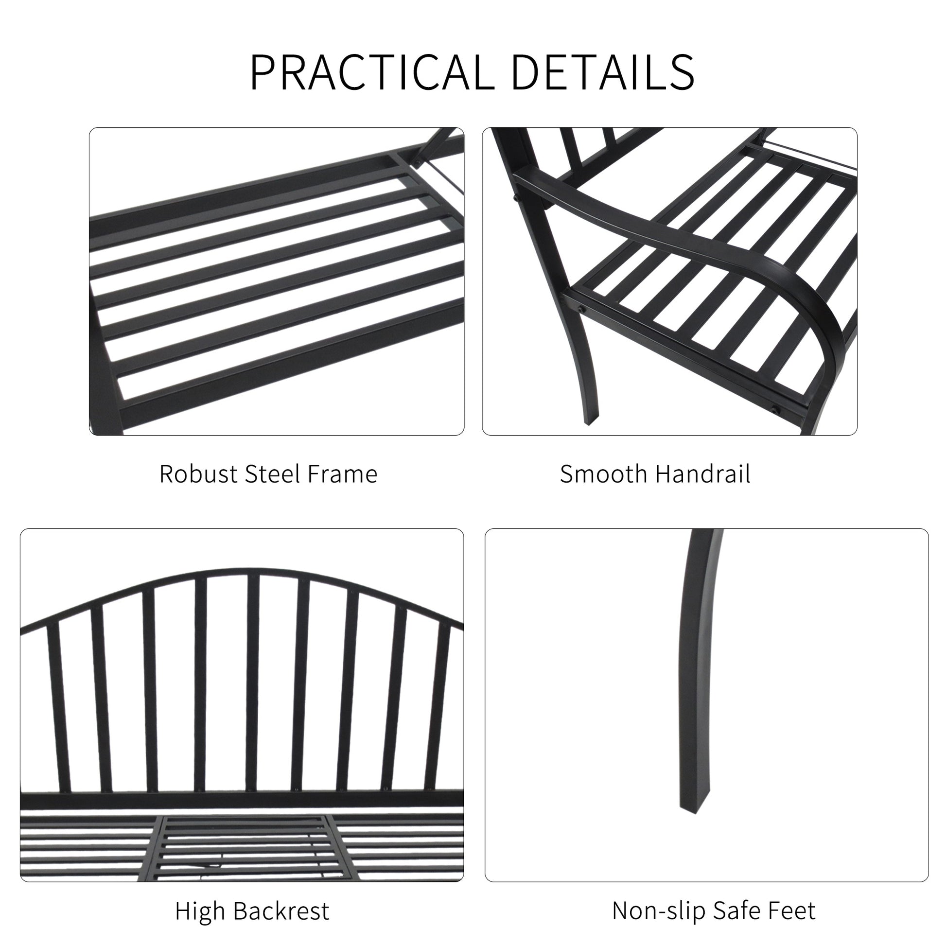 Outsunny Outdoor Metal Frame Bench Patio Park Garden Seating Chair with Foldable Middle Table