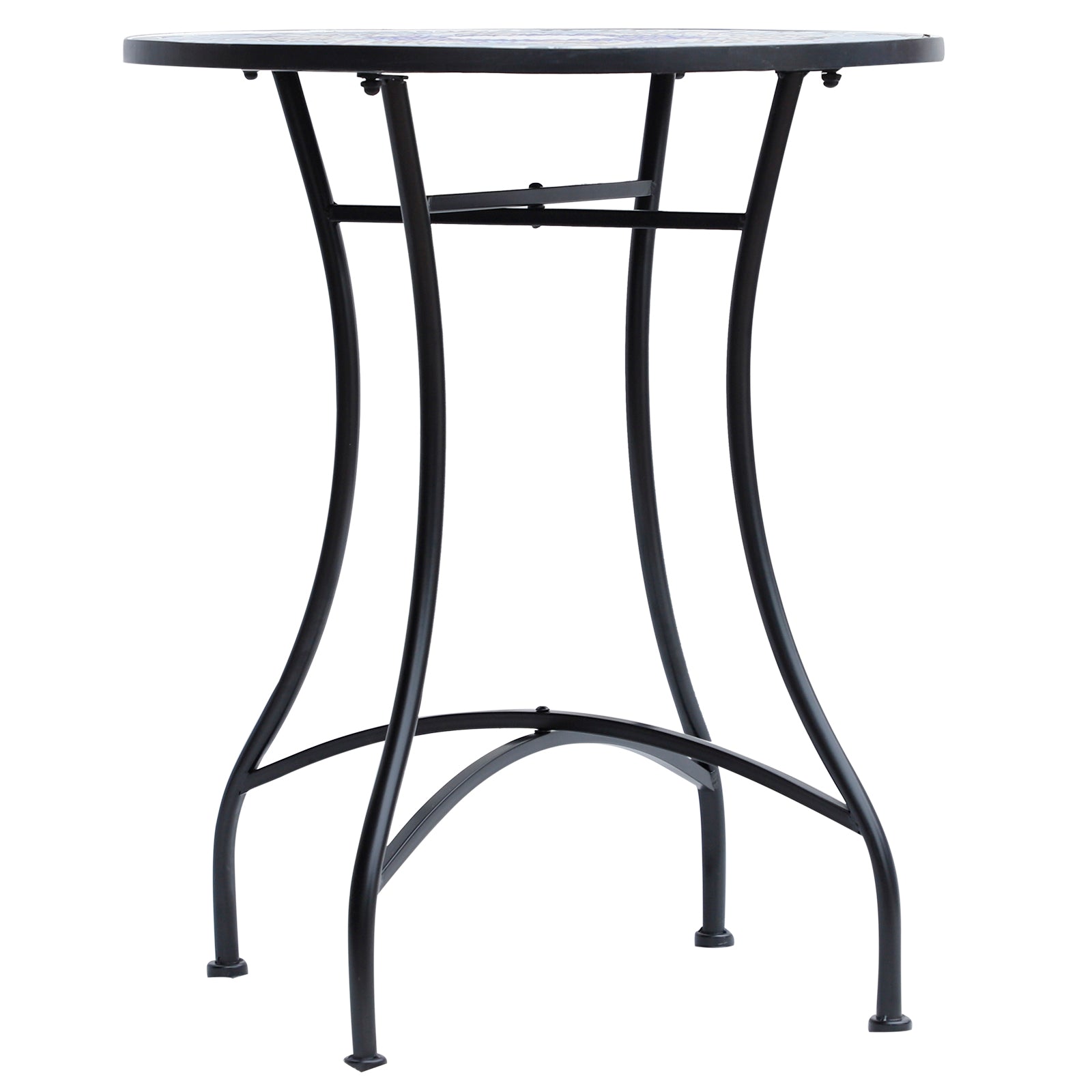 Outsunny Outdoor Mosaic Round Garden Table, Patio Bistro Coffee Side Table with 60cm Ceramic Top for Garden, Blue and White