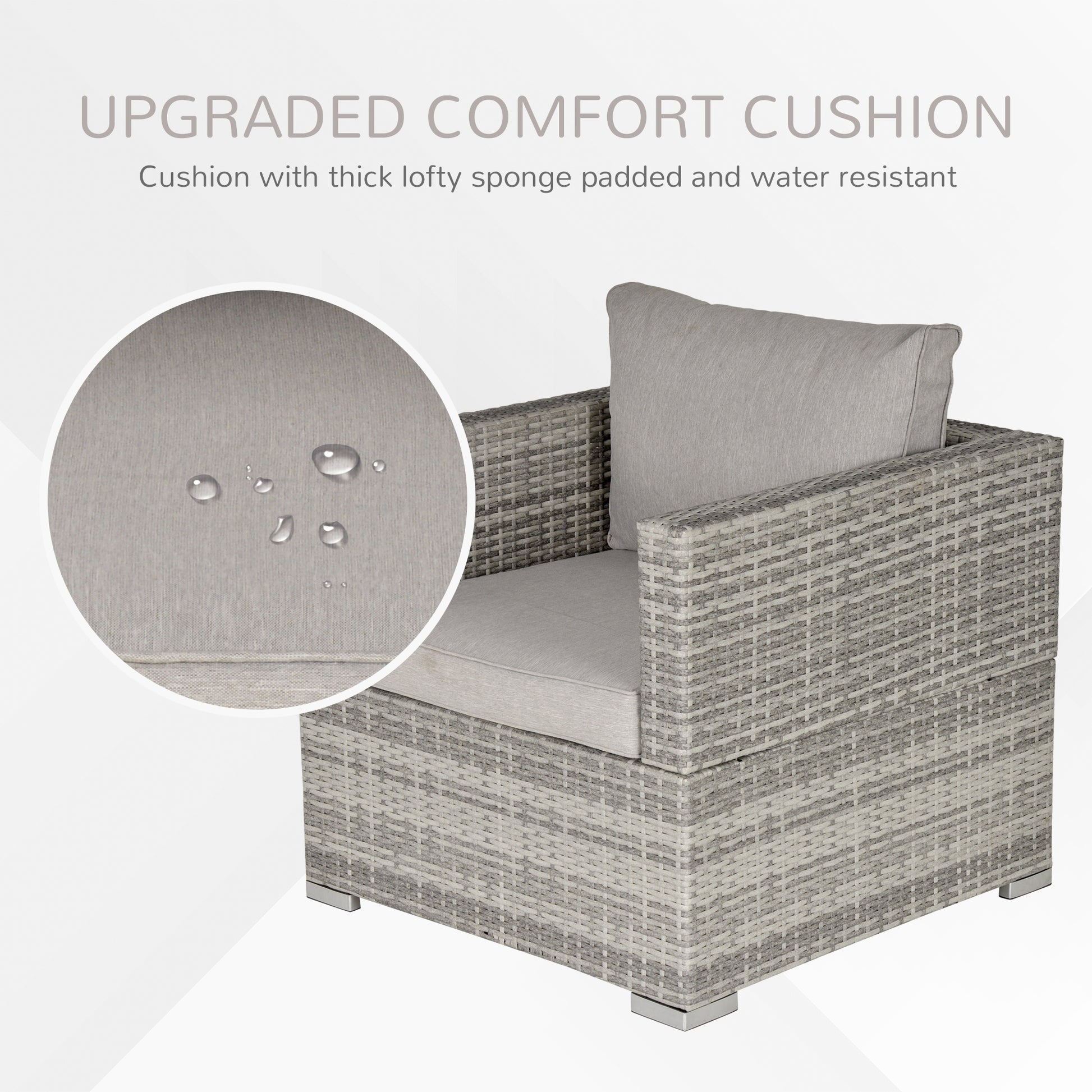 Outsunny Outdoor Patio Furniture Single Rattan Sofa Chair Padded Cushion All Weather for Garden Poolside Balcony Grey