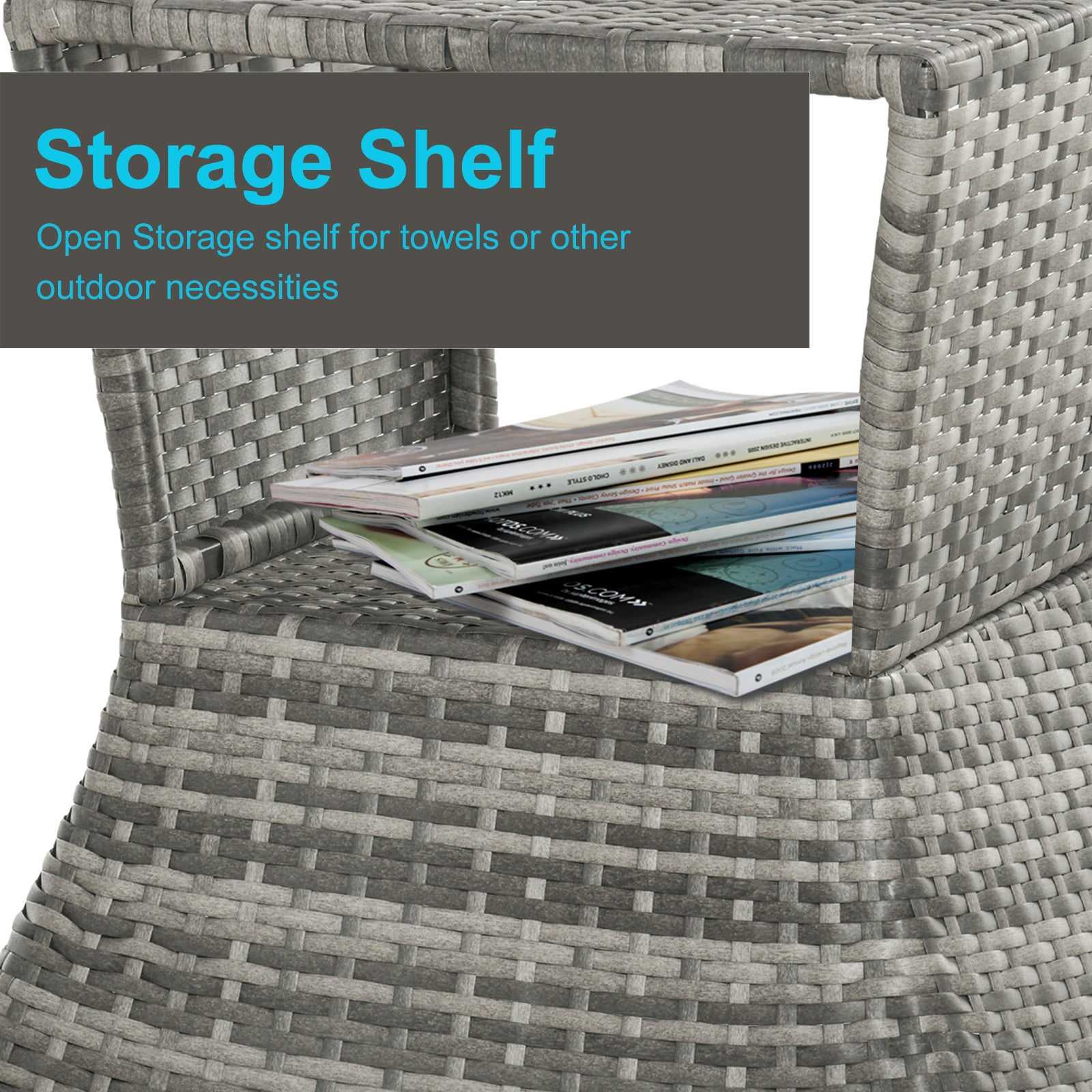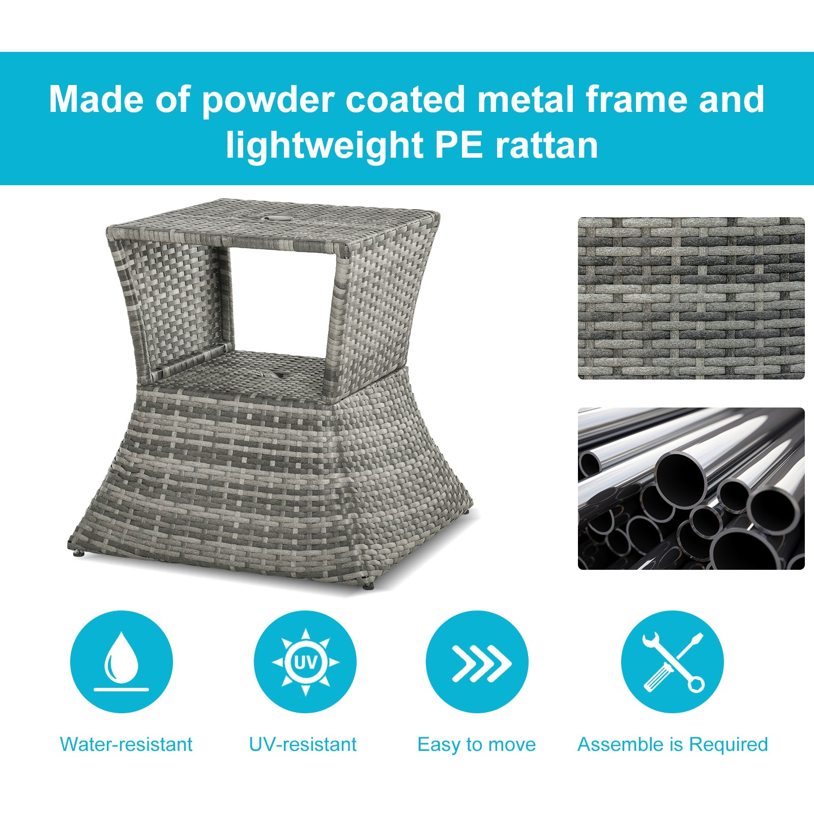 Outsunny Outdoor Patio Rattan Wicker Coffee Table Bistro Side Table w/ Umbrella Hole and Storage Space, Grey