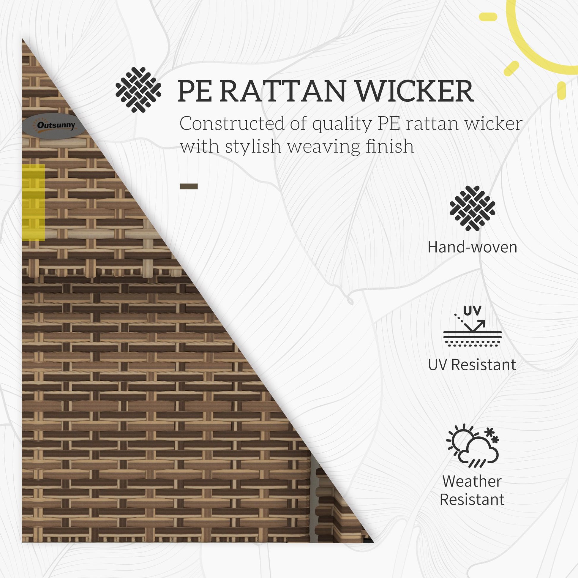 - Hand-woven PE rattan over steel frame for durability and elegance