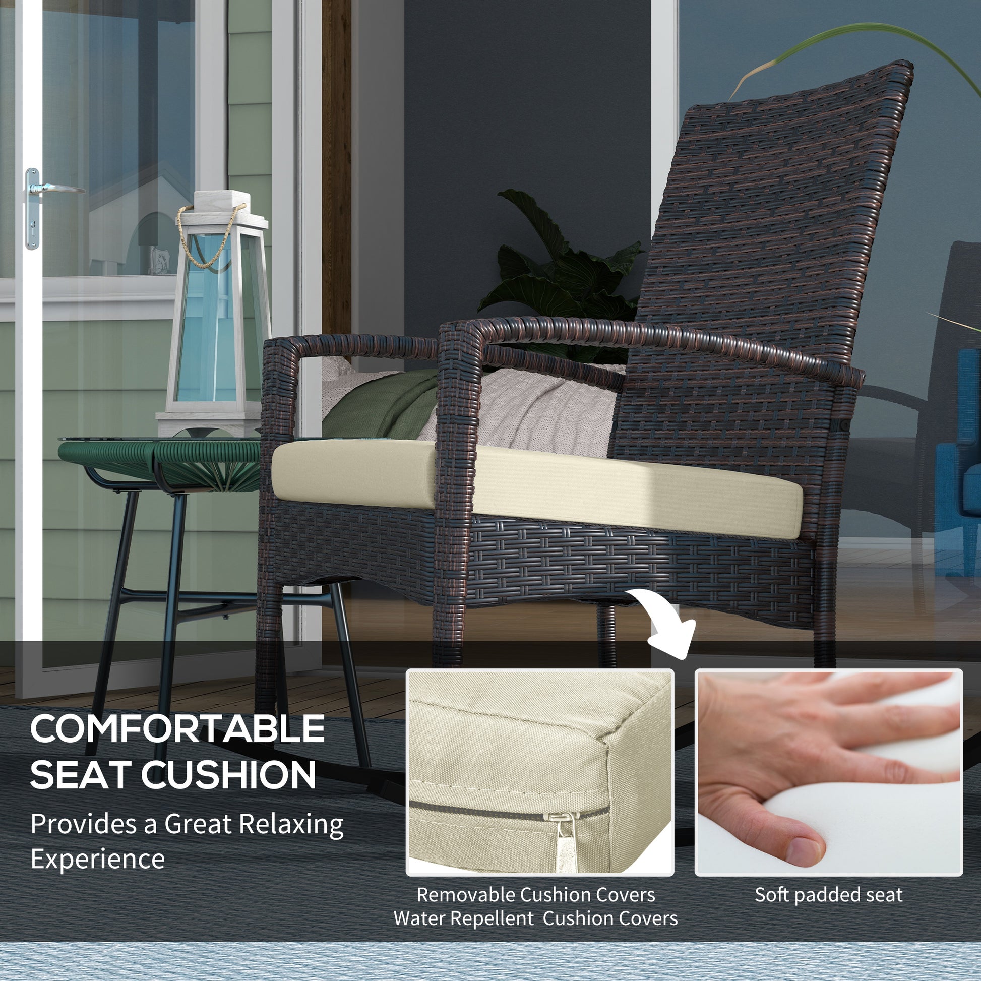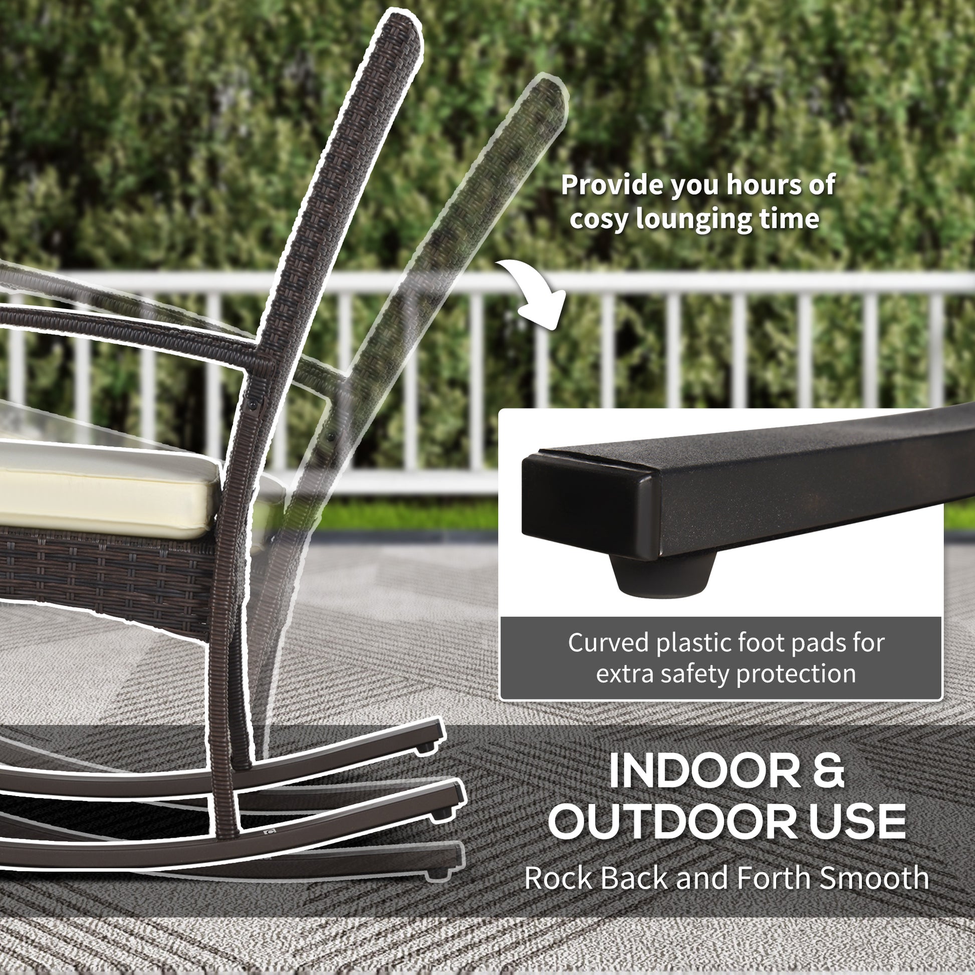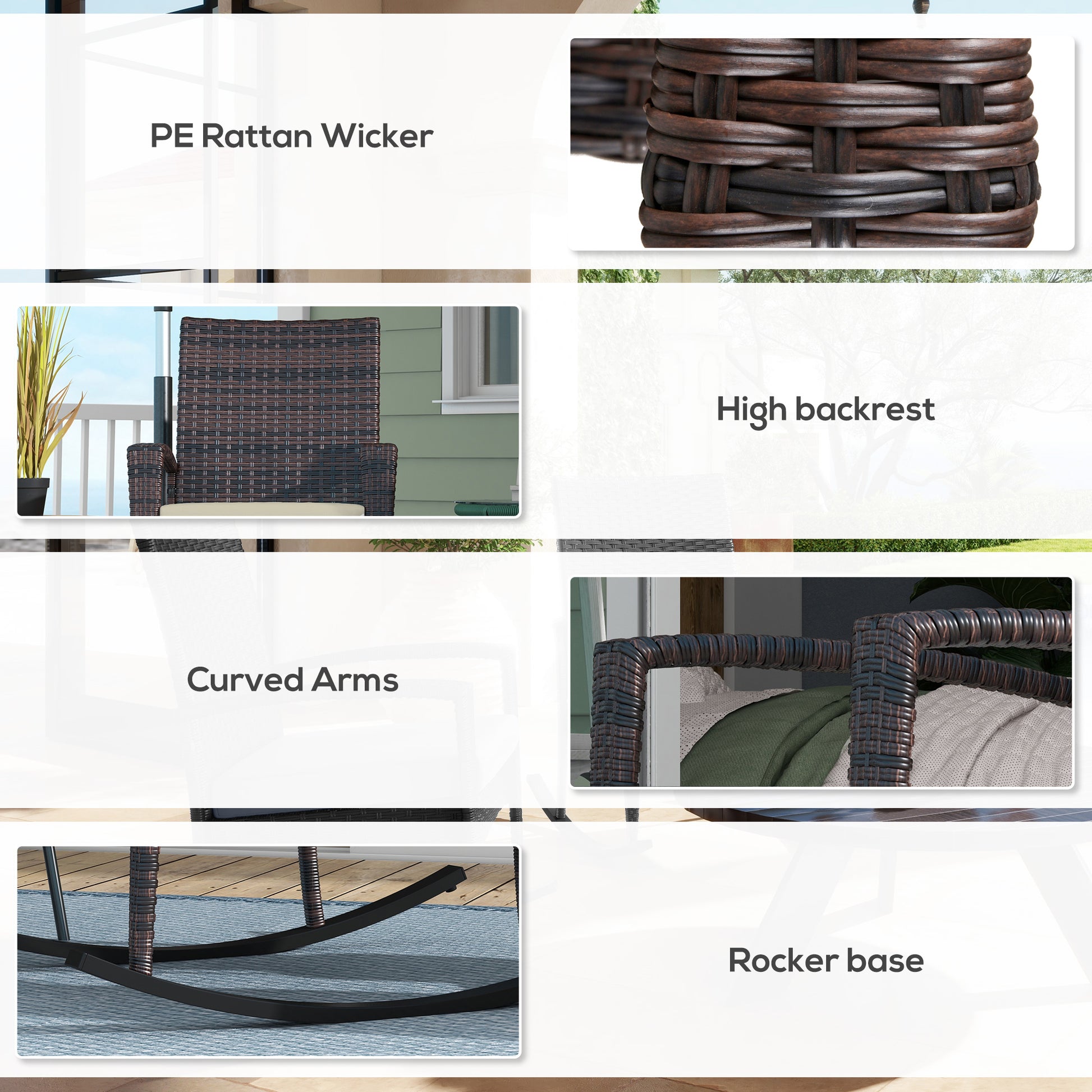 Outsunny Outdoor PE Rattan Rocking Chair Set of 2, Garden Rocking Chair Set with Armrest and Cushion