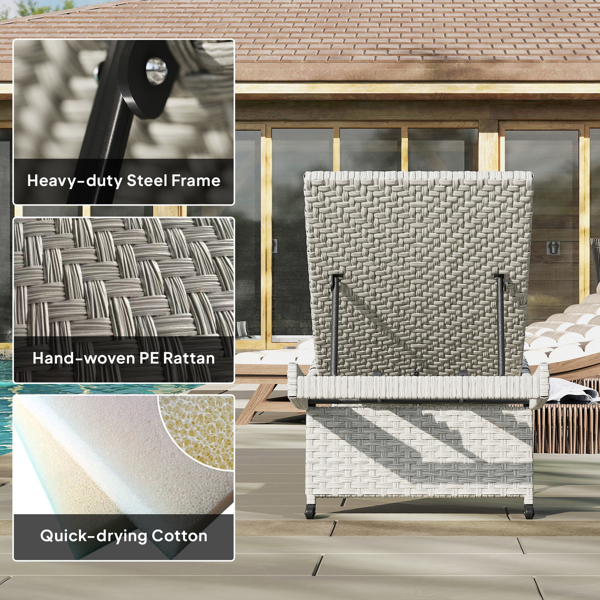 Relax in style with the Outsunny Rattan Sun Lounger! The ergonomic 'S' shaped curve offers comfort, while the adjustable backrest provides four reclining positions. With smooth wheels for easy mobility and a foldable design for storage, this outdoor lounge chair made of PE rattan and steel ensures a cool, relaxing experience for years. Great for your outdoor oasis!