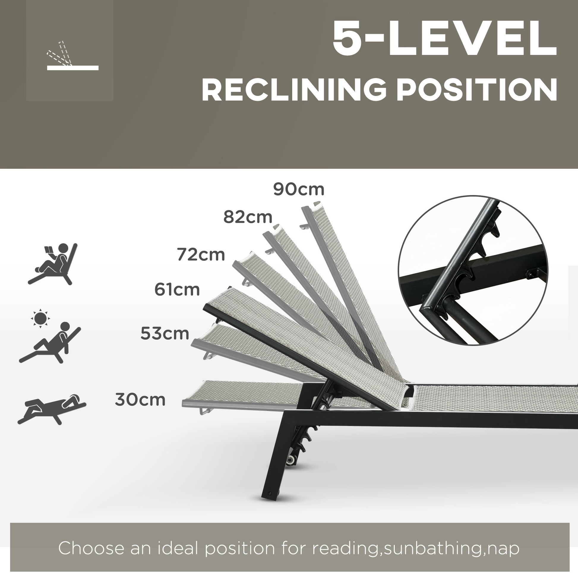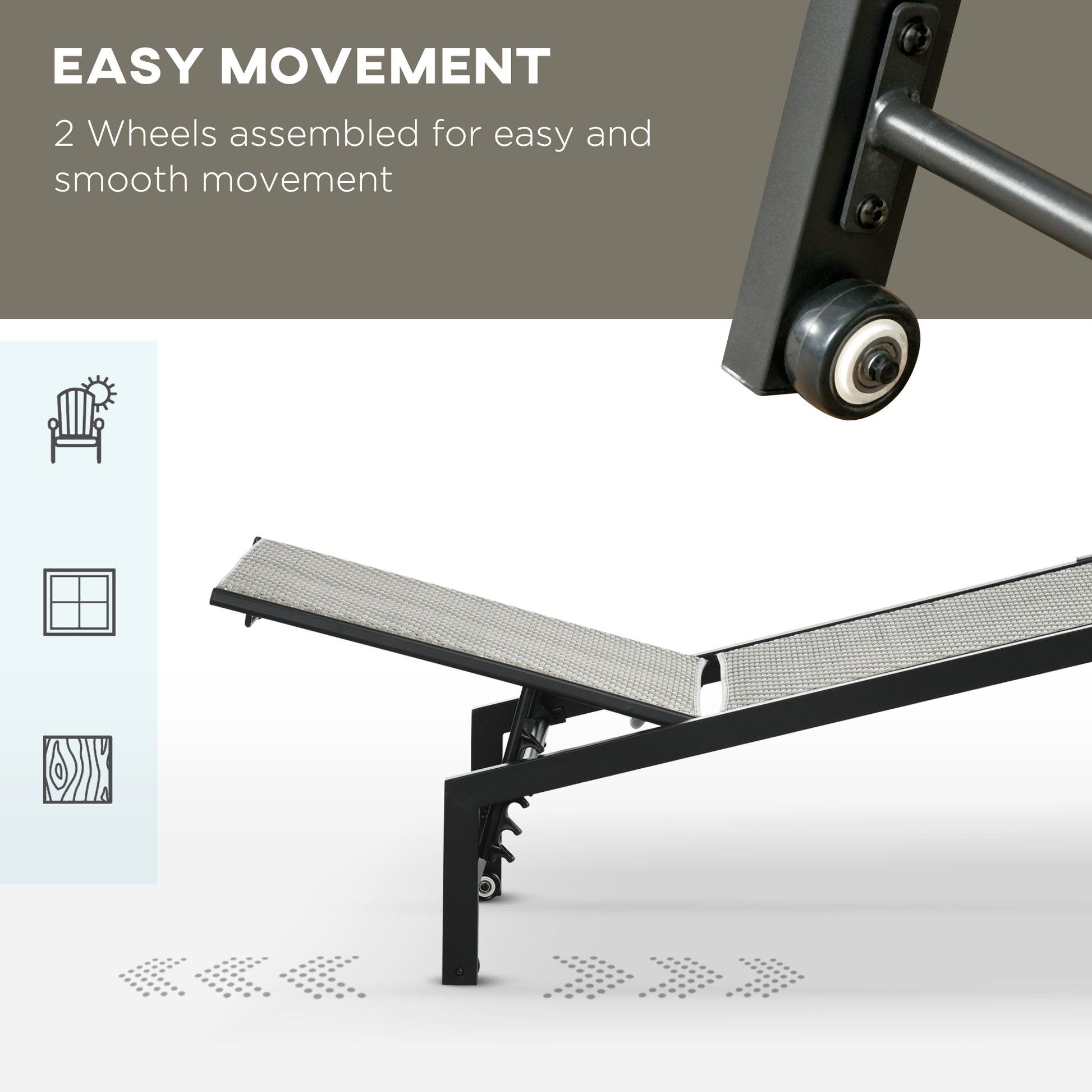 Outsunny Outdoor PE Rattan Sun Loungers, Patio Wicker Chaise Lounge Chair with 5-Position Backrest, Wheels for Sun Room, Garden, Poolside, Black