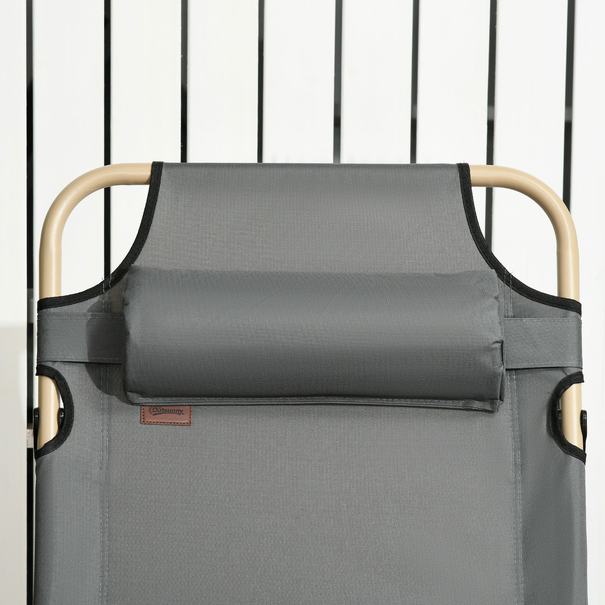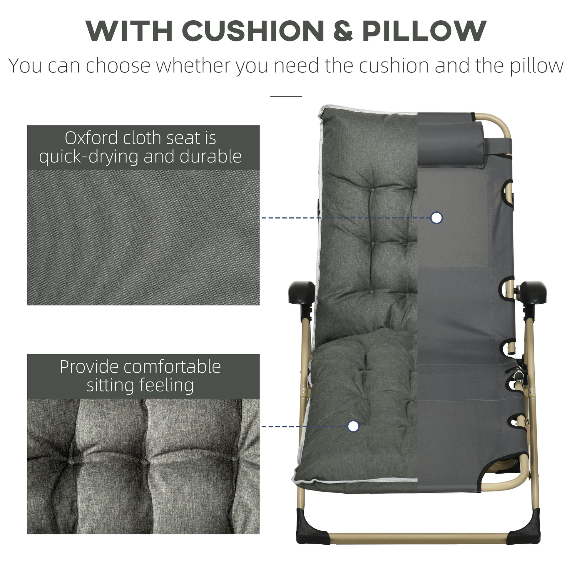 Outsunny Outdoor Reclining Sun Lounger Garden Recliner Chair Folding With Cushion Pillow Adjustable Backrest And Footrest - Grey