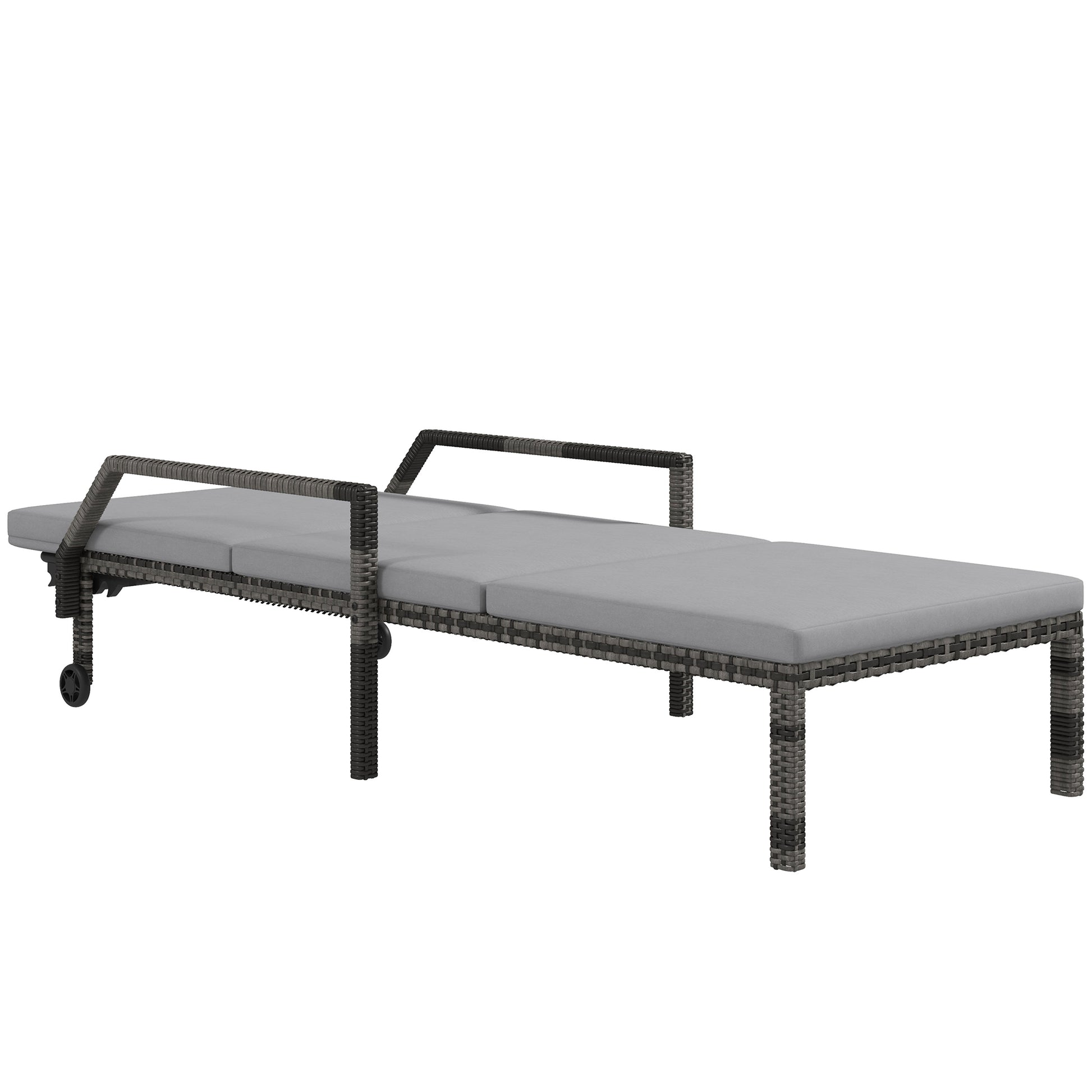 Outsunny Outdoor Sun Lounger, Rattan Wicker Chaise Recliner with 5-Level Adjustable Backrest and 2 Wheels