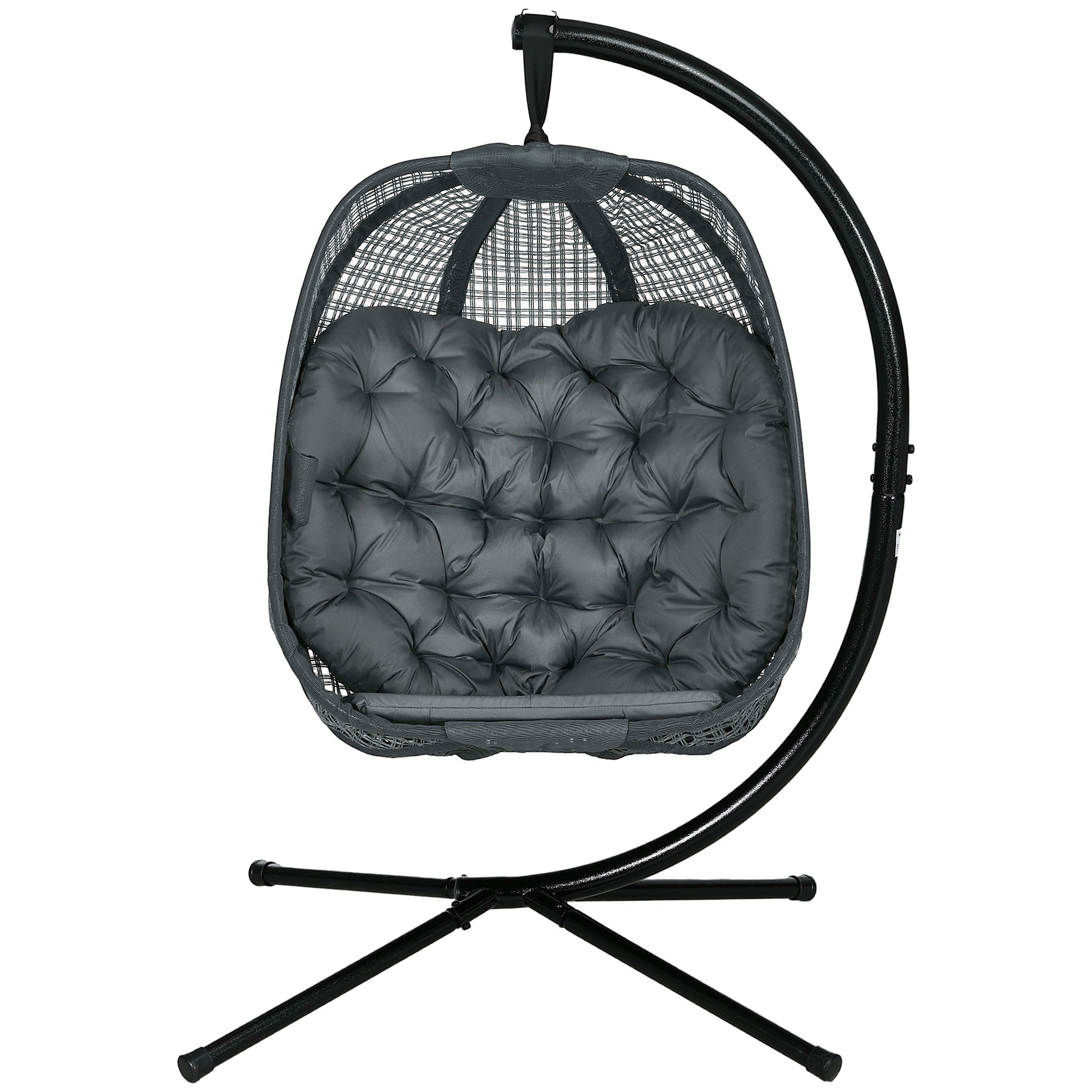 Make the most of your lazy days with this hanging egg chair from Outsunny. The curved back, spacious seat and thick padded cushion offer a comfortable sitting experience. The hanging stand made of steel frame which can solidly hold up to 120kg, giving you complete peace of mind when sitting on it. Easy to store with a foldable seating basket, space-saving and convenient. Infuse elegance into your indoor and outdoor spaces effortlessly with our hanging garden chair.