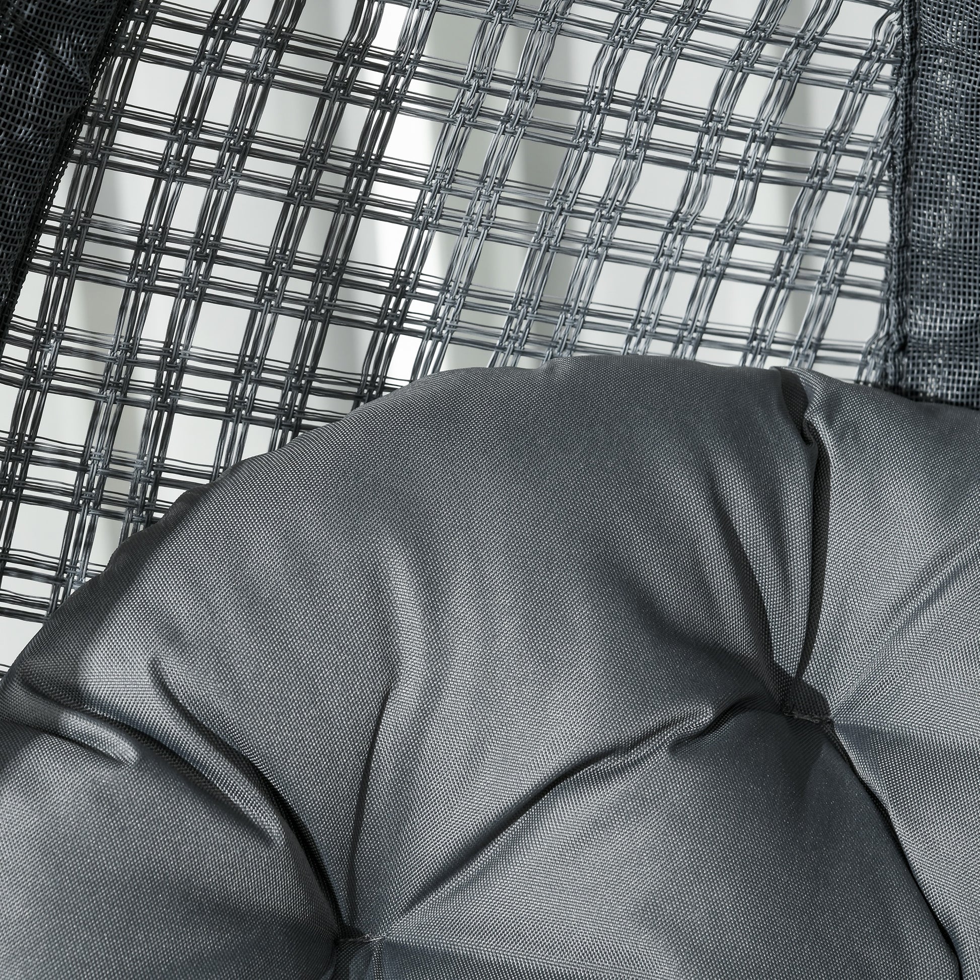 Outsunny Outdoor Swing Chair w/ Thick Padded Cushion, Patio Hanging Chair w/ Metal Stand, Foldable Basket, Cup Holder, Dark Grey