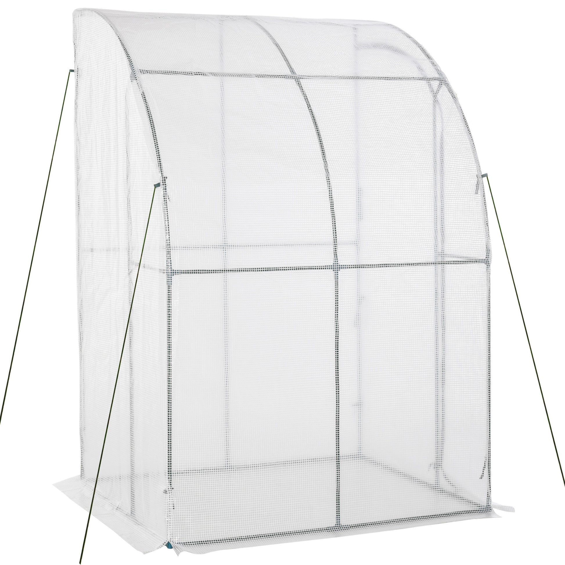 Outsunny Outdoor Walk-In Lean to Wall Greenhouse with Zippered Roll Up Door and PE Cover, 143L x 118W x 212Hcm, White