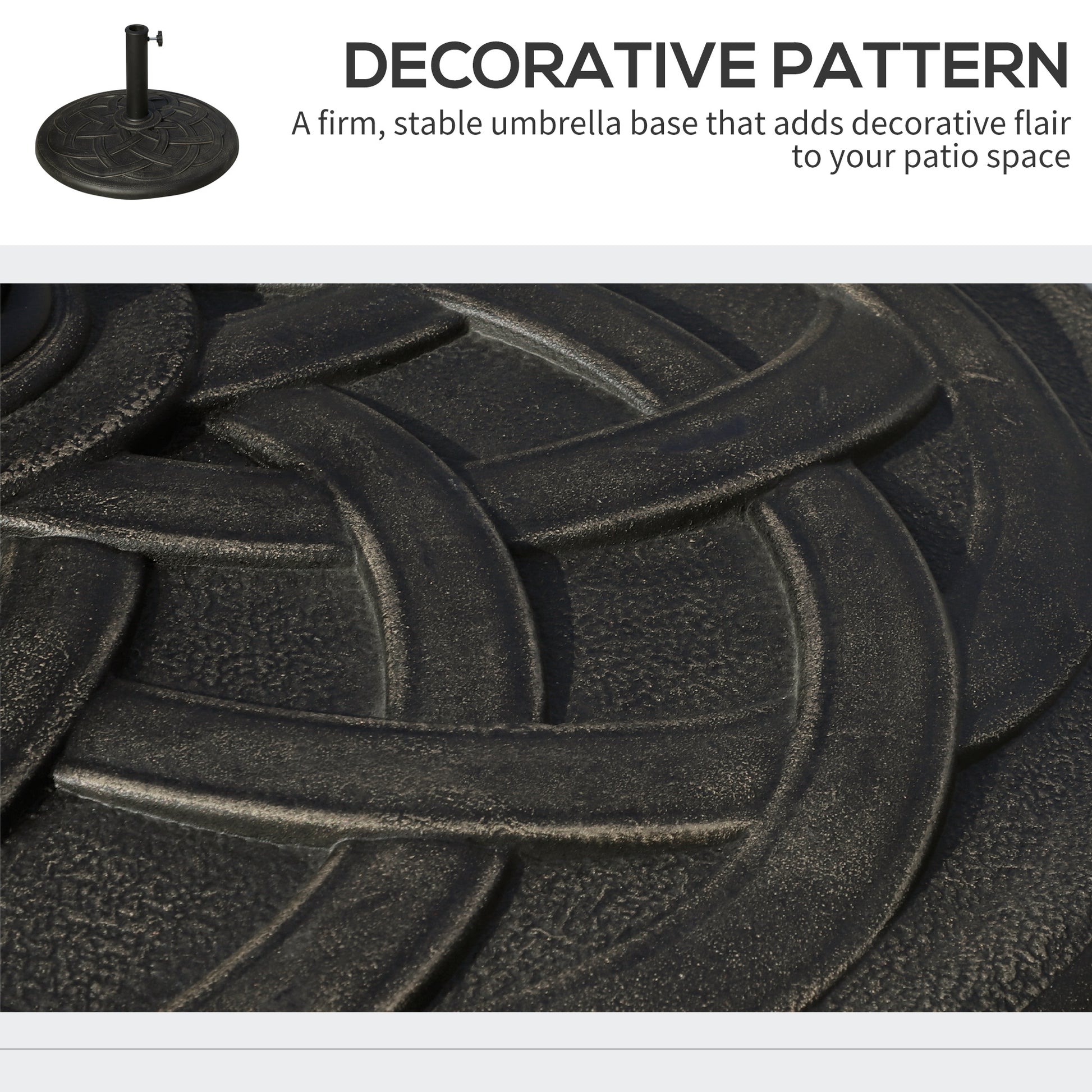 This Outsunny brand circular umbrella base stand, offers a decorative, high-end touch to your outdoor living area while holding your umbrella in place. With a suttle finish, the base is designed to add charm and elegance to most backyard patio space. Made from resin, steel and plastic, this base is rust-resistant and made to last for years.