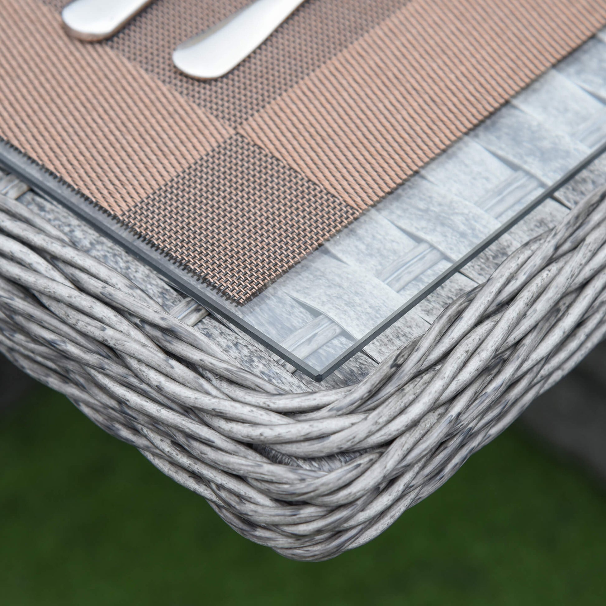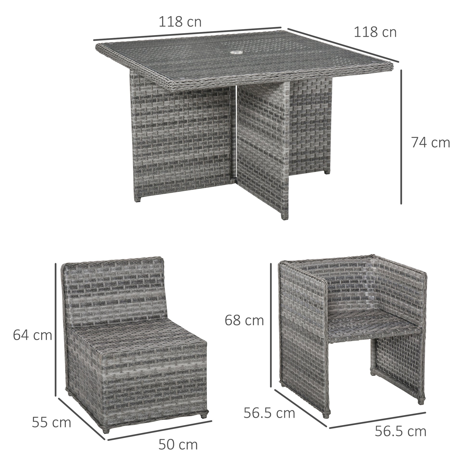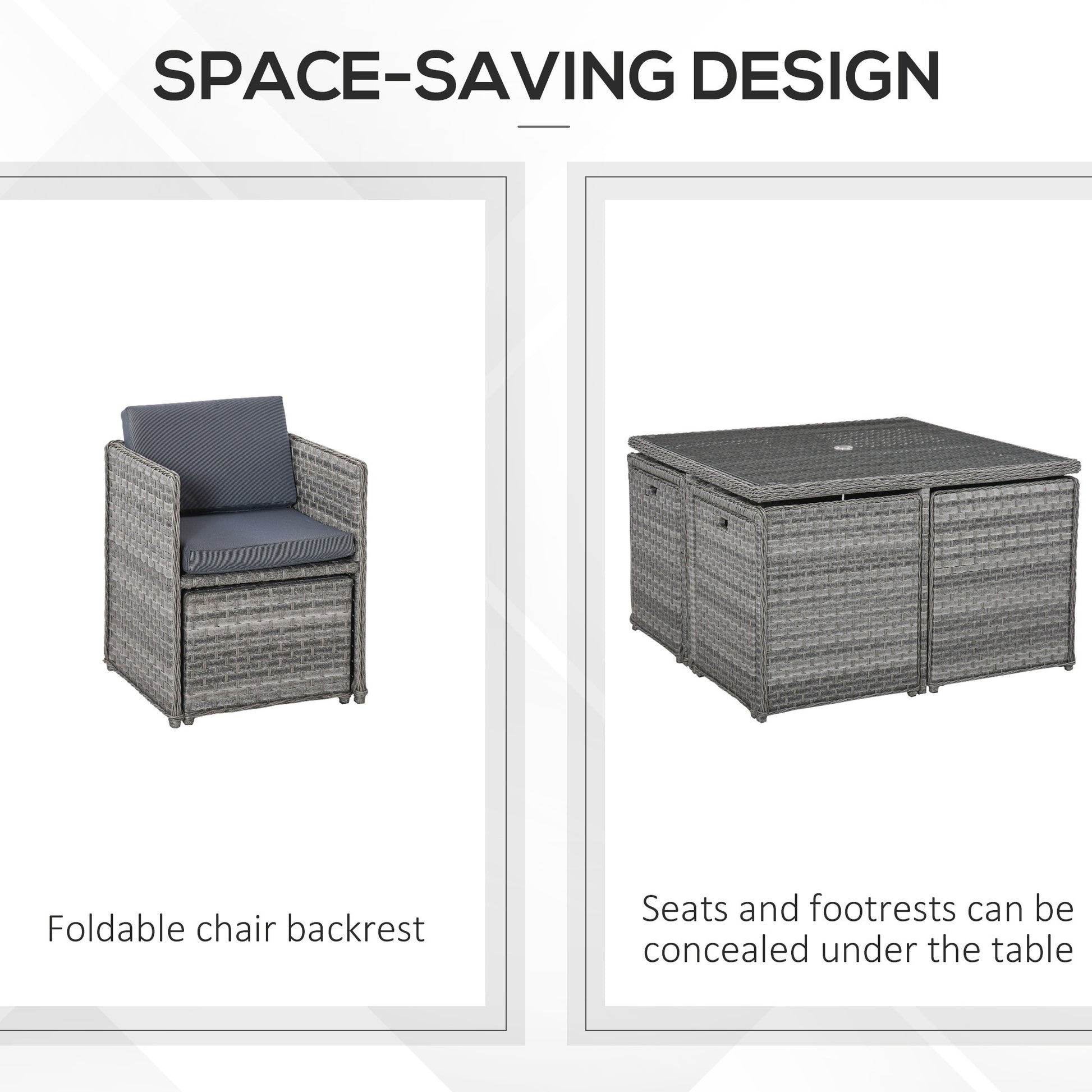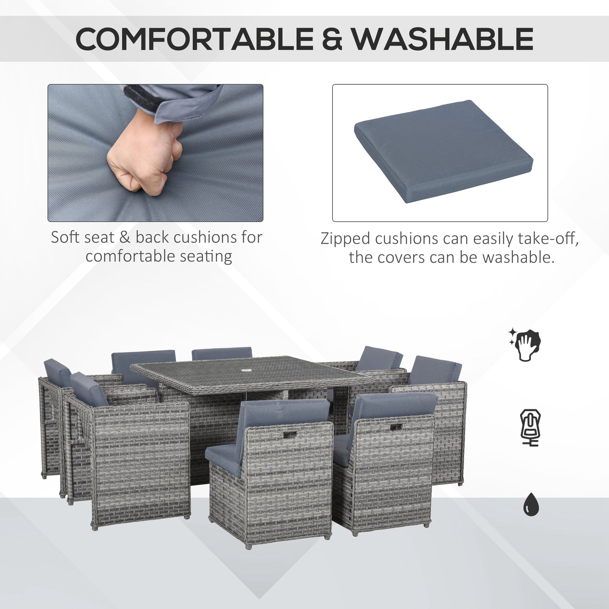 Outsunny Patio 8-Seater Rattan Dining Table Chair Set Garden Wicker Cube Sofa Furniture w/ Umbrella Hole Table for Indoor & Outdoor Mixed Grey