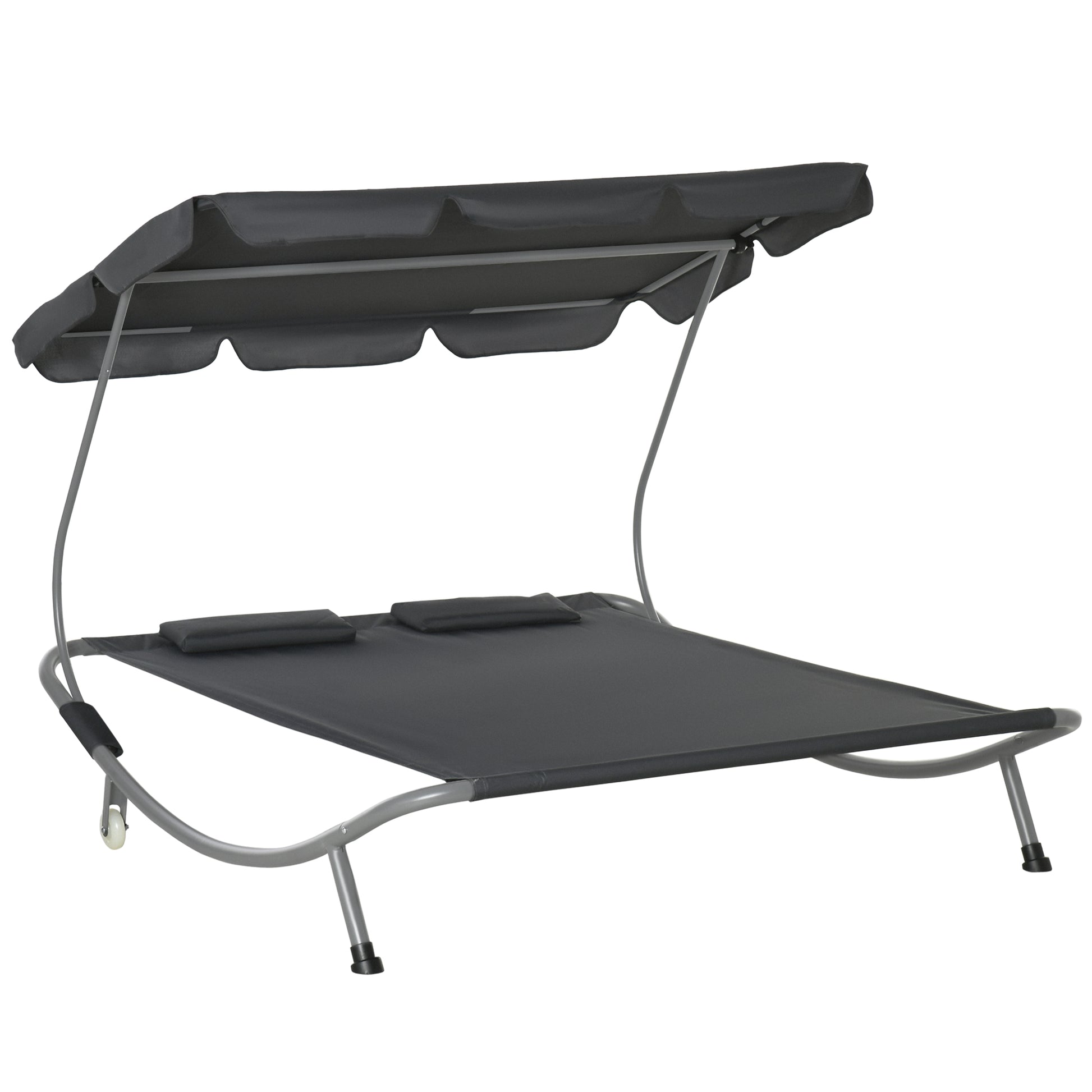 Outsunny Patio Double Hammock Sun Lounger Bed w/ Canopy Shelter, Wheels & 2 Pillows, Grey