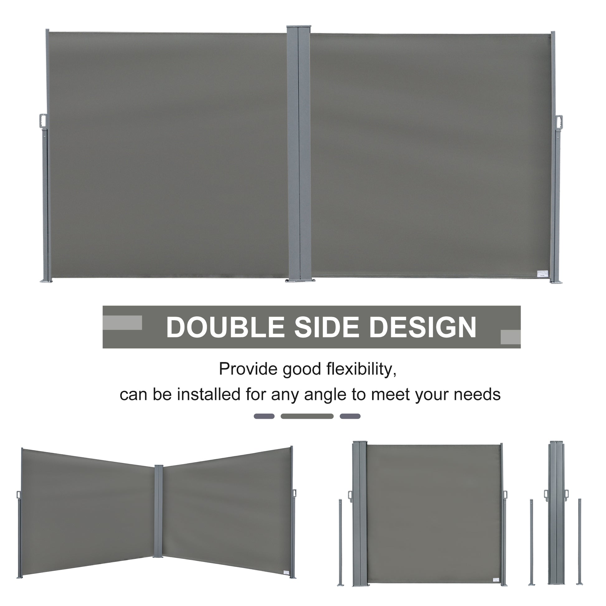 Patio Retractable Double Side Awning Folding Privacy Screen Fence Privacy Wall Corner Divider Sun Shade Wind Screen Indoor Room Divider-Grey
