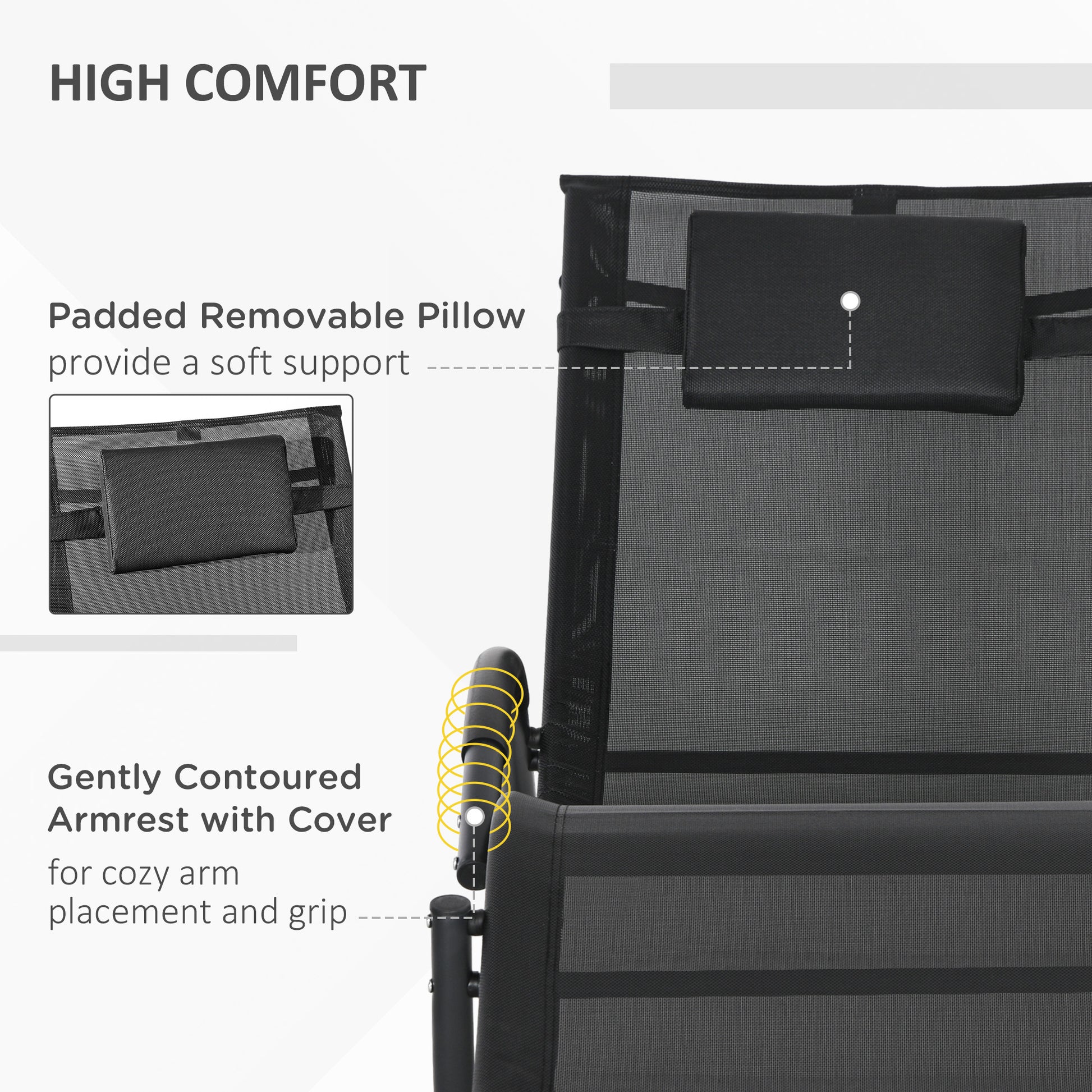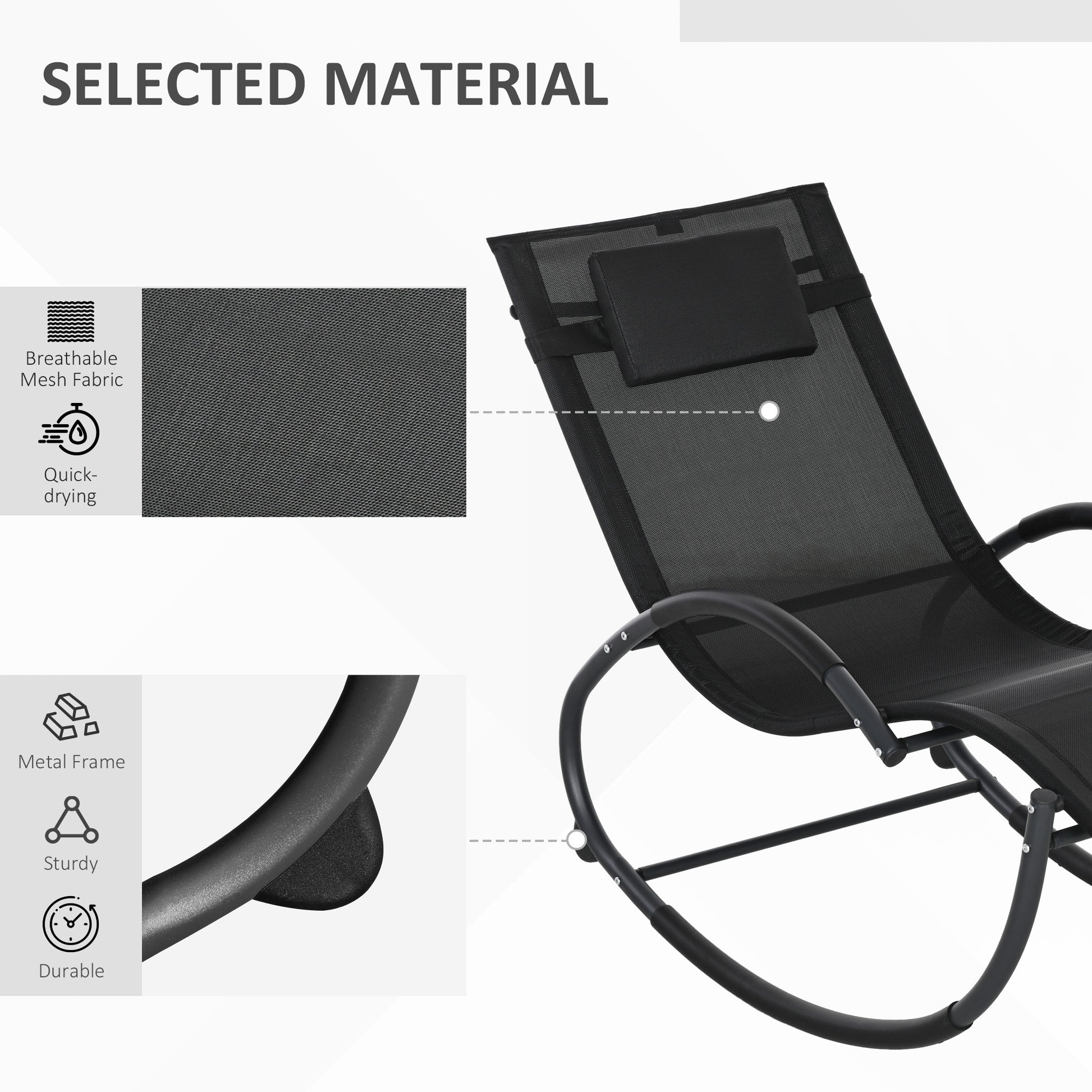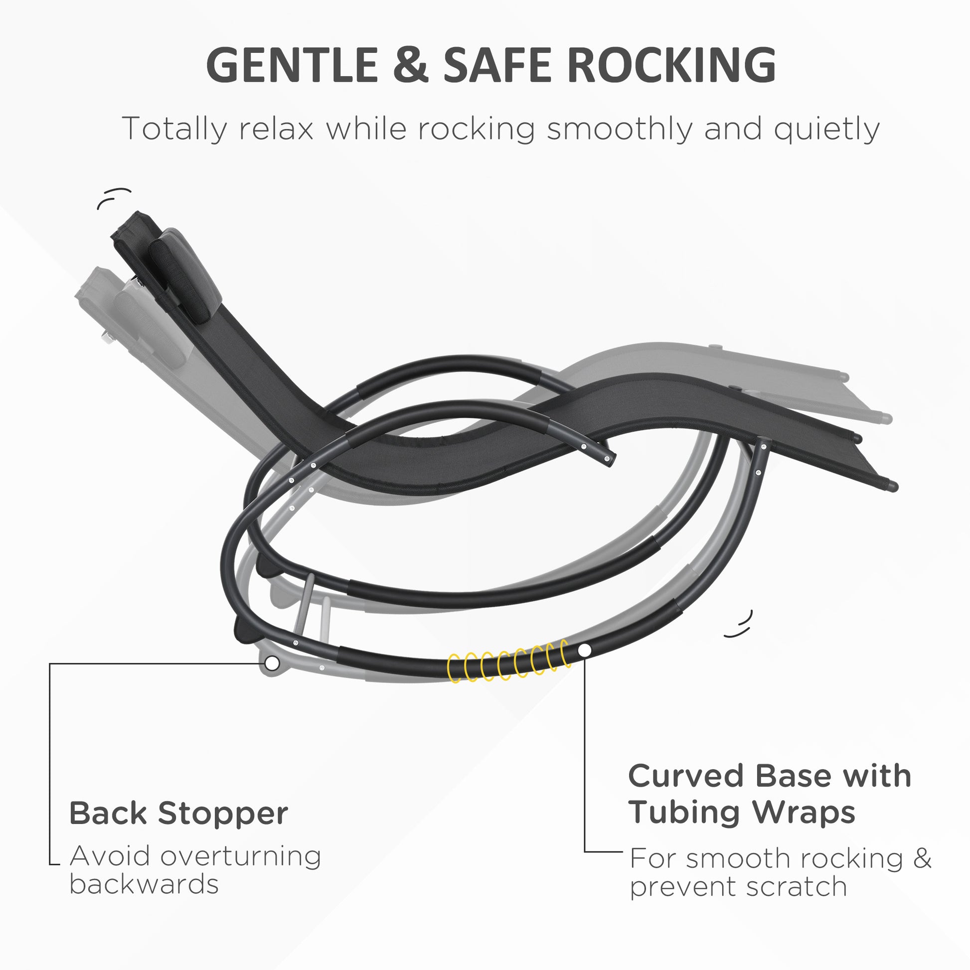 Outsunny Patio Texteline Rocking Lounge Chair Zero Gravity Rocker Outdoor Patio Garden Recliner Seat w/ Padded Pillow - Black