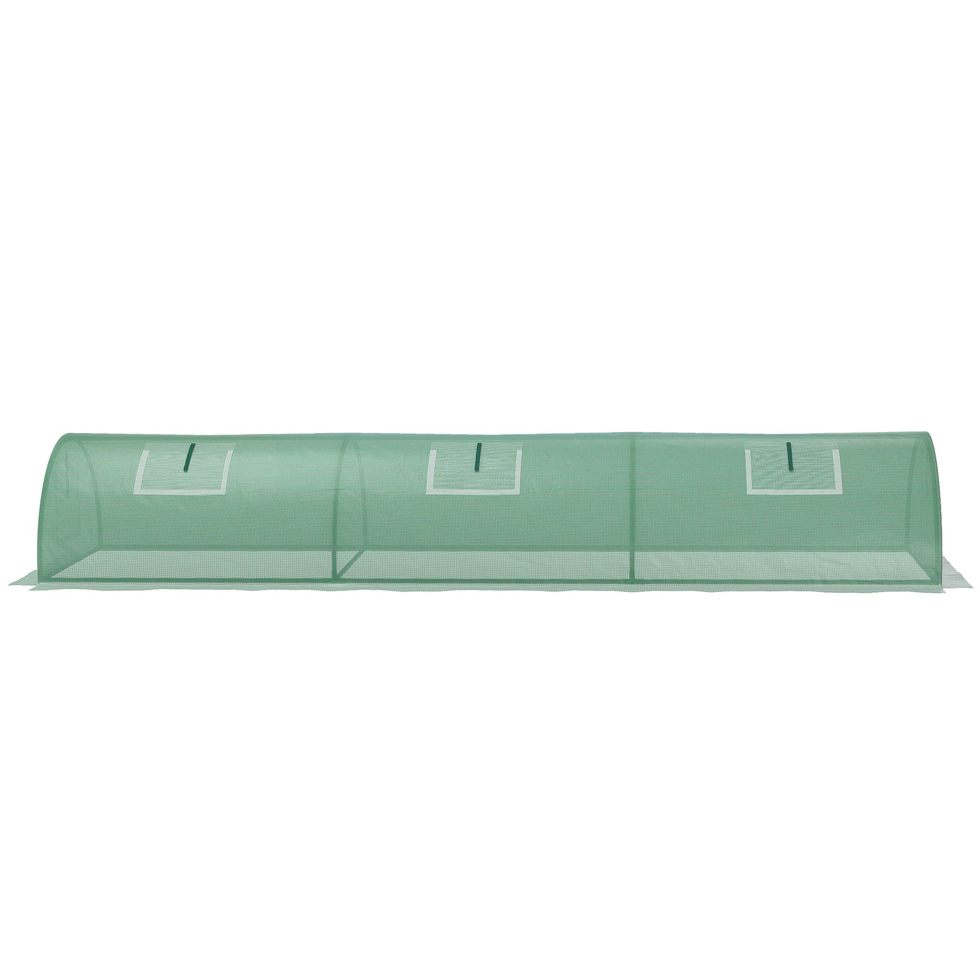 Outsunny PE Mini Greenhouse, 3m Portable Tunnel Green House with 5 Mesh Windows, Green Grow House Steel Frame for Indoor and Outdoor, Green