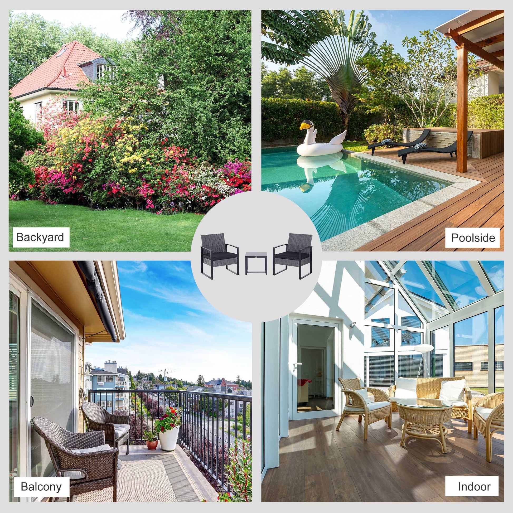 Outsunny PE Rattan Garden Furniture 2 Seater Patio Bistro Set Weave Conservatory Sofa Coffee Table and Chairs Set Grey