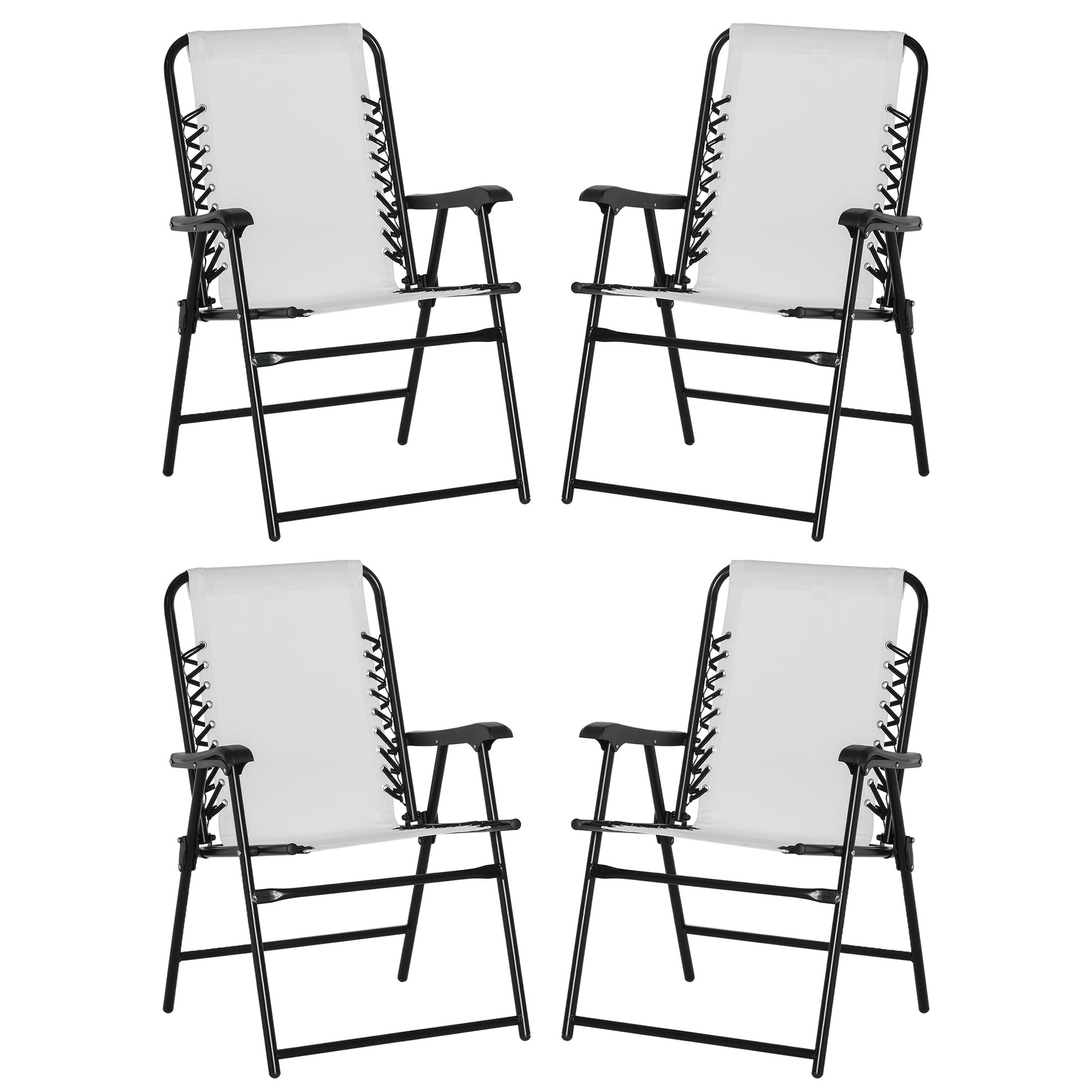 This four-piece outdoor folding chair set from Outsunny is great for any gathering, both indoor and outdoor. The garden chair frames are made from powder coated steel for a strong, supportive structure. Mesh fabric seat holds your body comfortably, the high back and armrests give you support. Lightweight and foldable, each chair is easy to carry and store. Spend no time assembling; sit back and relax!
