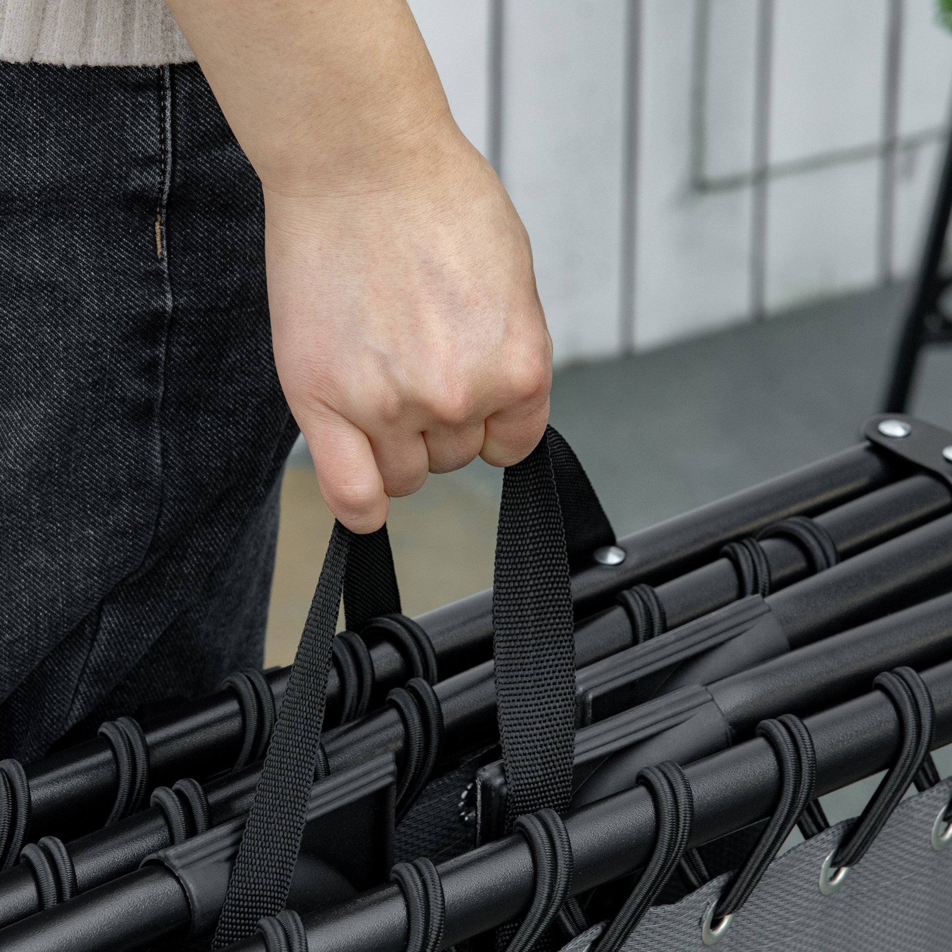 Lounge outdoors the classic way - go for this folding recliner from Outsunny. Sturdy steel frame supports up to 120kg. The back can be adjusted to five positions to relax at a position you want. There's a mesh fabric seat stretched on the frame to hold your body, with a removable pillow on the top to support your head/neck and keep it comfortable. Easily folded into a compact size, making it easy to carry and store. A perfect piece to put in your car for those weekend beach trips.