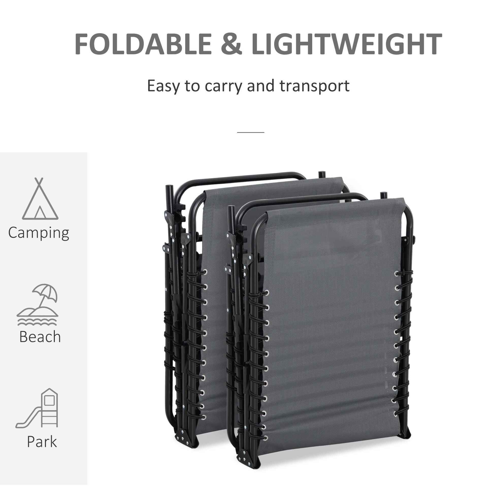 Portable Sun Lounger Set of 2, Folding Camping Bed Cot, Reclining Lounge Chair 5-position Adjustable Backrest with Side Pocket, Pillow - Grey