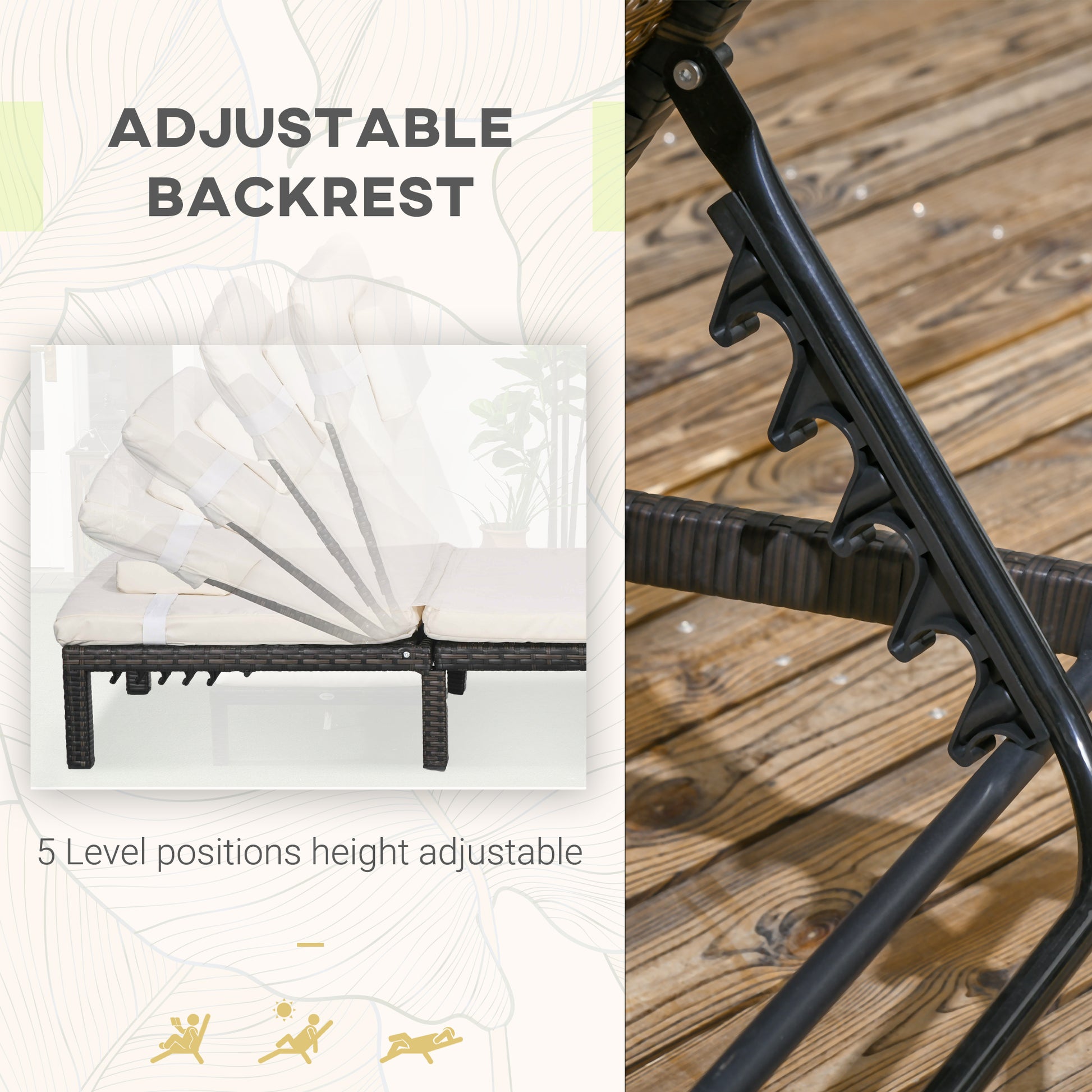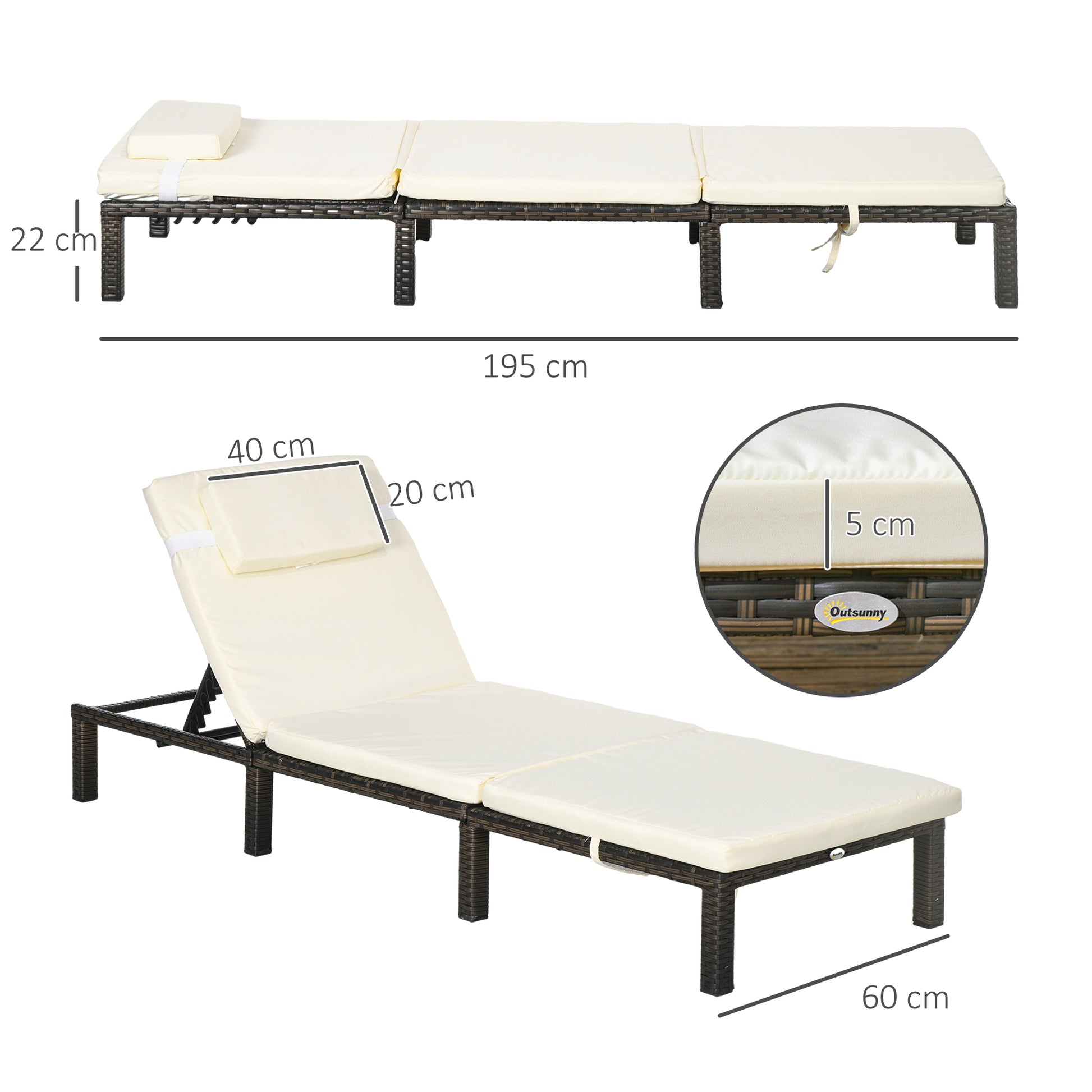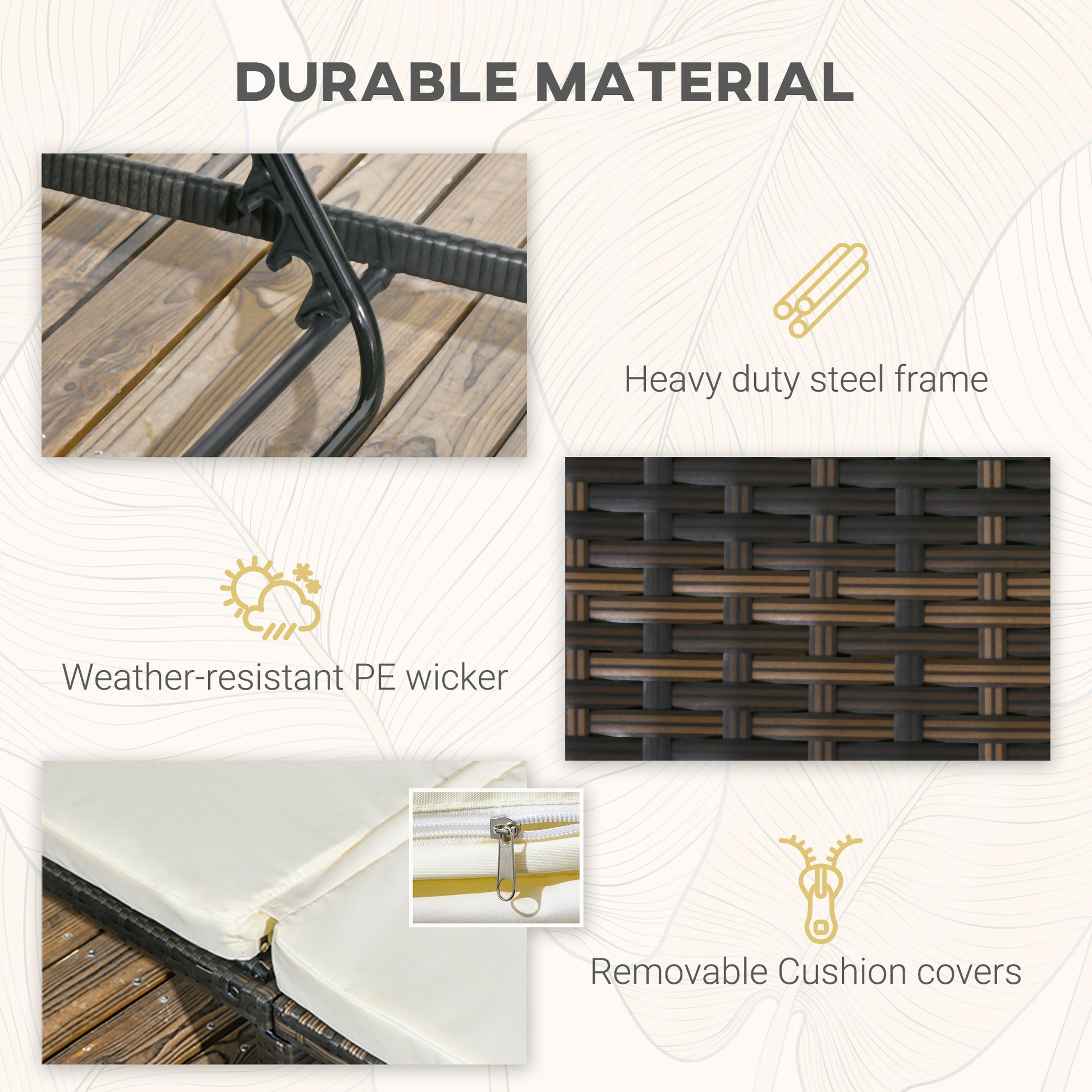 Lounge in luxury, whether in the poolside or patio outdoors - thanks to this garden lounge set from Outsunny. Formed of a powder coated galvanised steel frame with PE wicker wrapped around: weather-resistant and beautiful. The reclining backrest is 5-level adjustable, so you can choose an angle most comfortable for you. The reclining garden furniture come with padded cushion and headrest; the polyester cover can be washed to keep it clean. Style and comfort, blended into together.