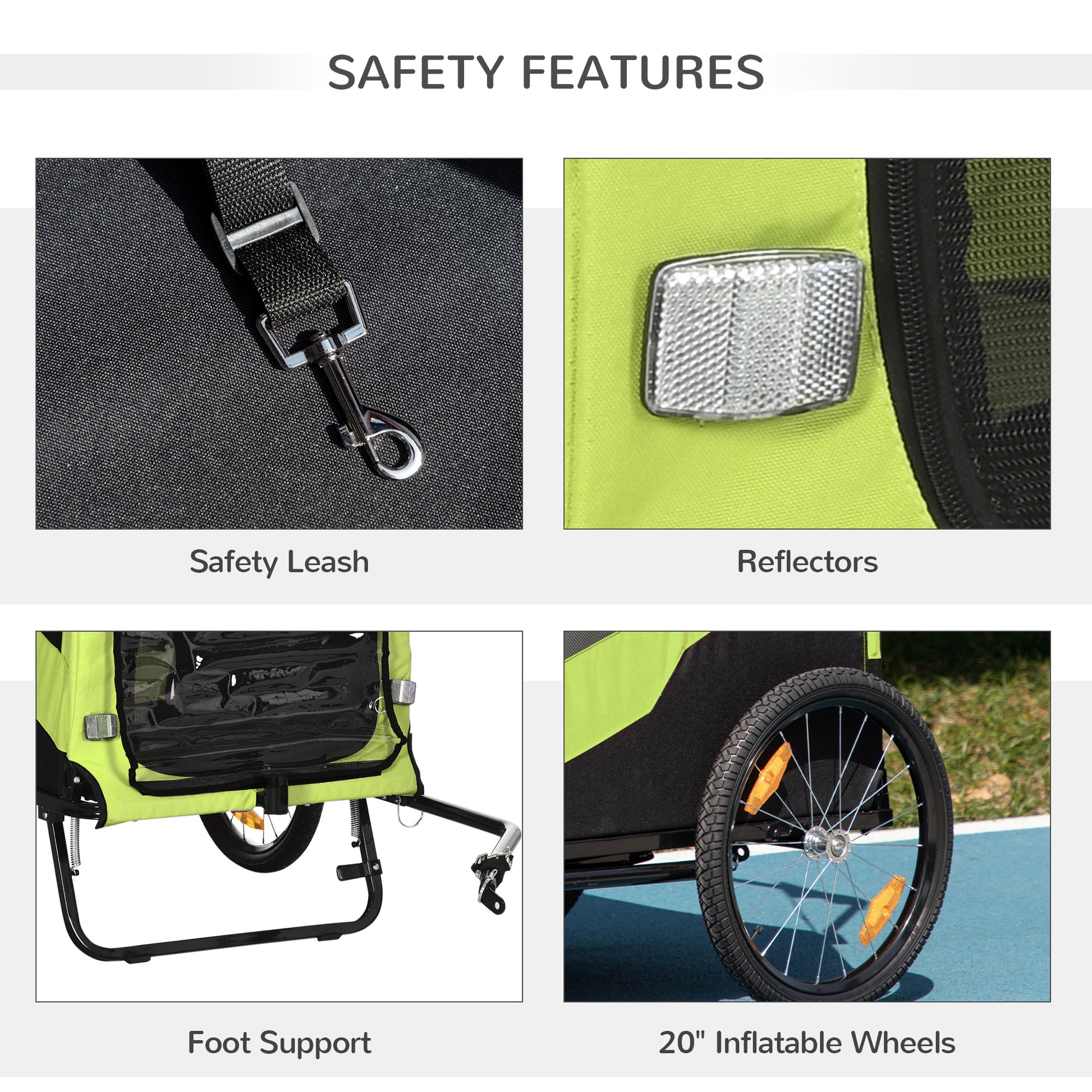 PawHut 2 in 1 Dog Bike Trailer Pet Stroller for Large Dogs with Hitch, Quick-release 20" Wheels, Pet Bicycle Cart Trolley Carrier for Travel, Green