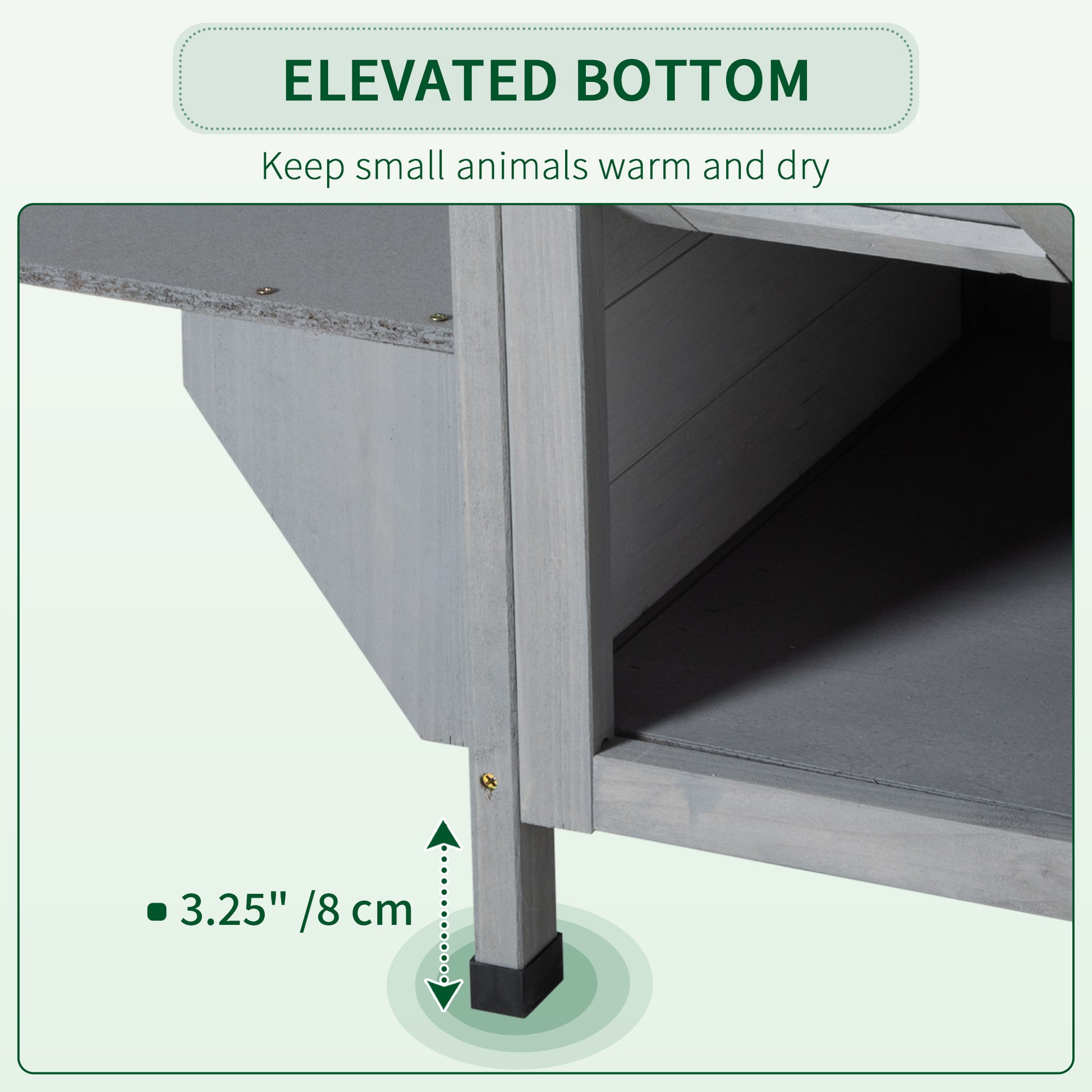 All cats are sure to enjoy this PawHut outdoor cat house. Its asphalt roof and wooden structure is water-resistant – suitable for outdoors. There are two levels, providing enough room for two cats to relax comfortably. With three jumping steps, two doors, a floor hole and an escape door, there are plenty of fun ways to get in and out. Finished with an openable roof, making it easy to get in and clean this cat house – it also keeps their area ventilated, preventing unpleasant odours from forming.