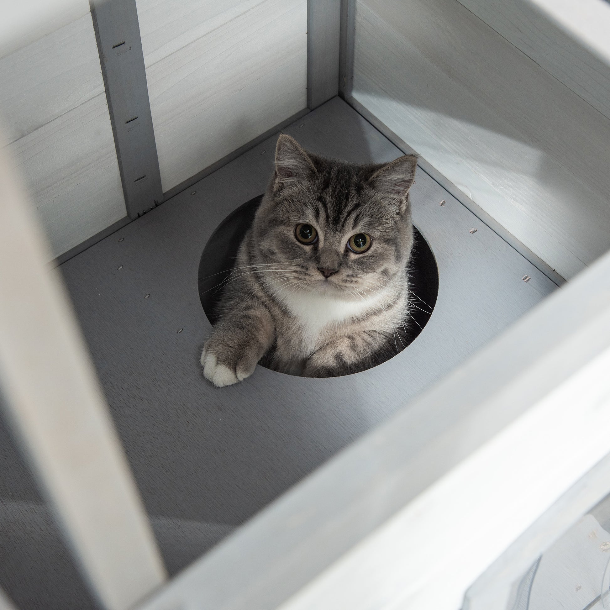 PawHut 2-Story Indoor or Outdoor Cat House W/ Escape Door, Cat Shelter, White