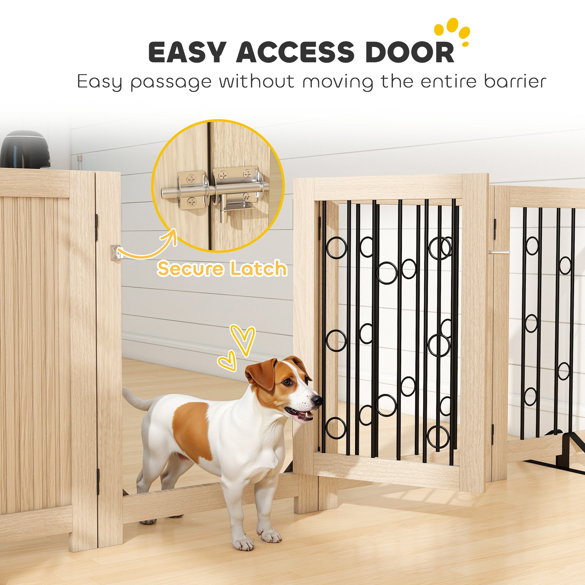 4 Panel Freestanding Pet Gate, Indoor Dog Barrier with Lockable Door, Support Feet, 360° Flexible Hinges, Oak