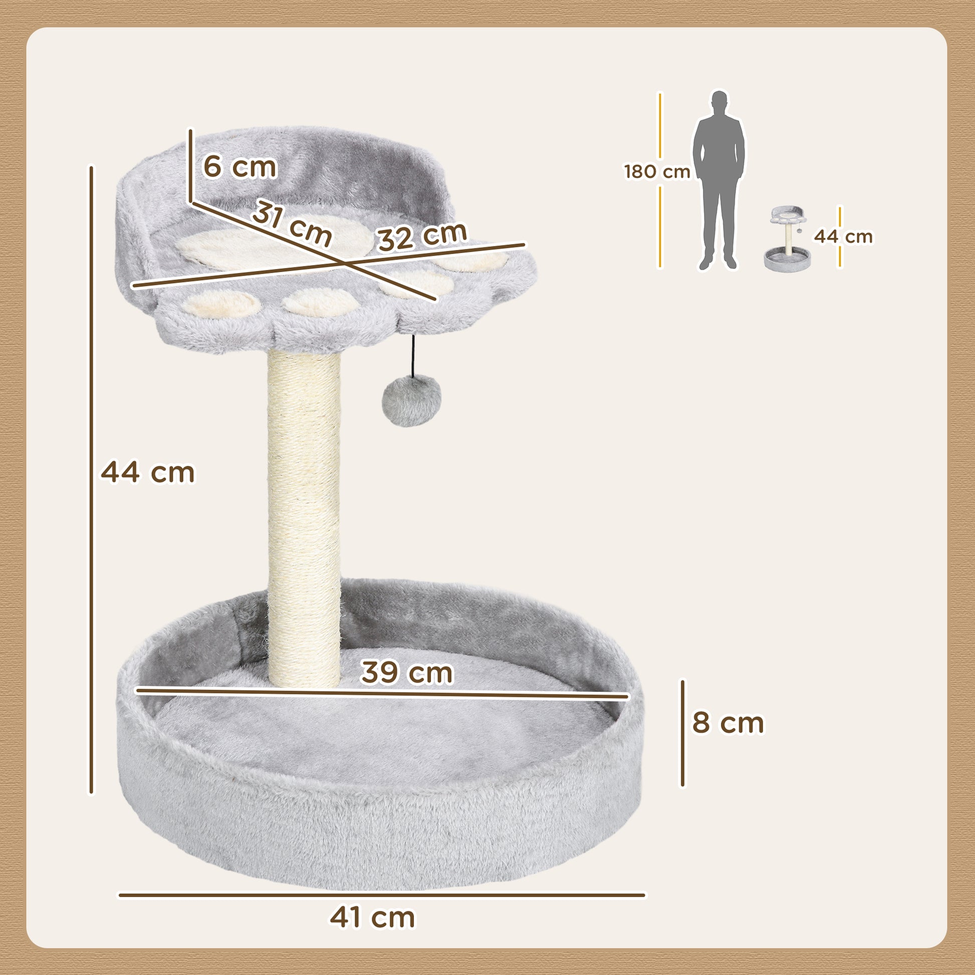 PawHut 44cm Cat Tower with Sisal Cat Scratching Post, Cat Claw Shape, Light Grey