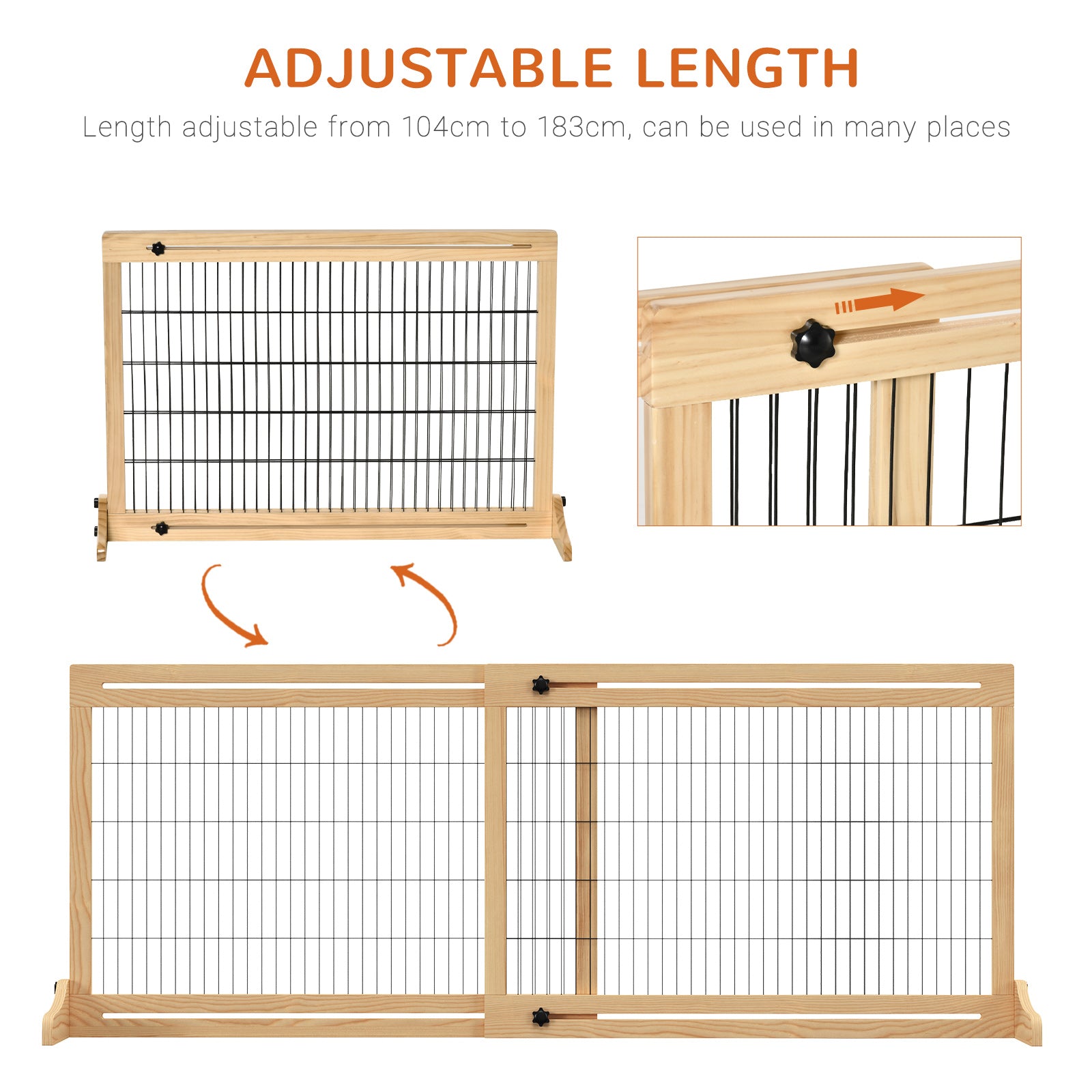 PawHut Adjustable Wooden Pet Gate, Freestanding Dog Barrier Fence with 2 Panels for Doorway, Hallway, 69H x 104-183 cm, Natural
