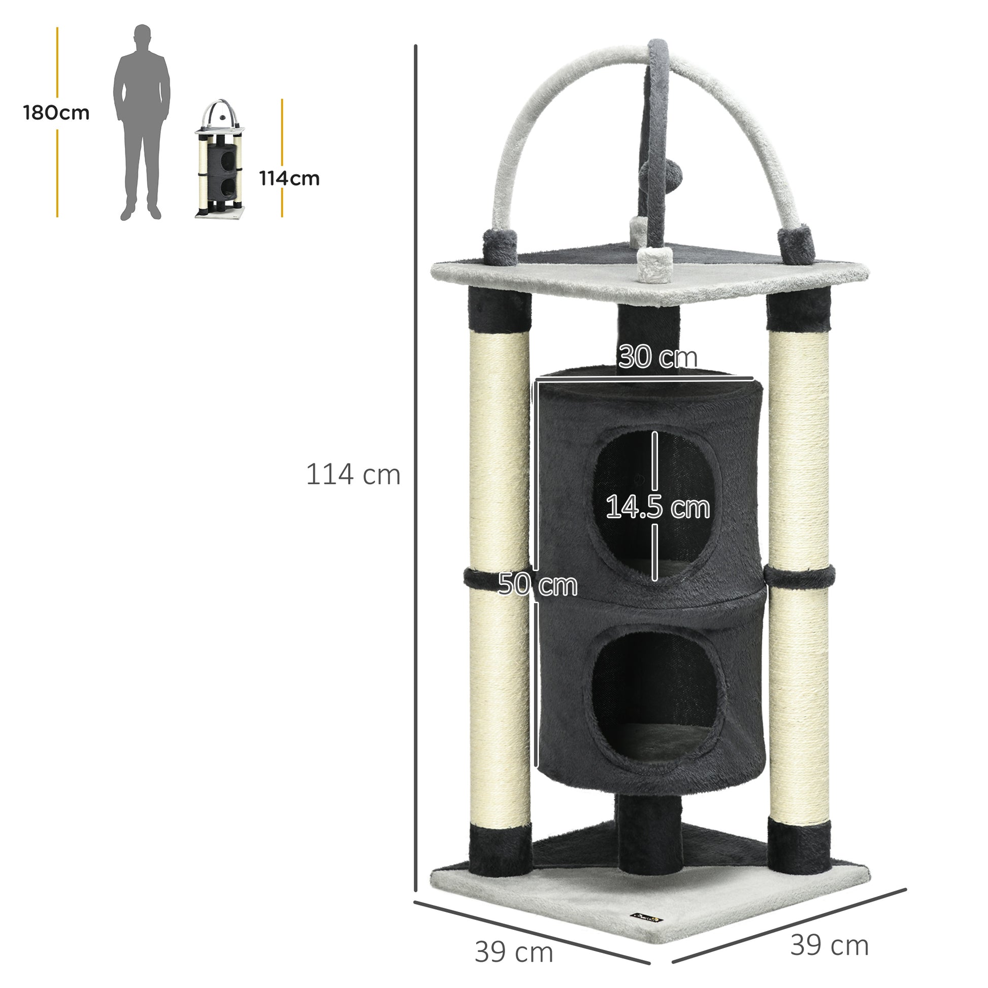 PawHut Cat Tree, with Scratching Posts, Cat House, Bed, Hanging Toy Ball - Grey