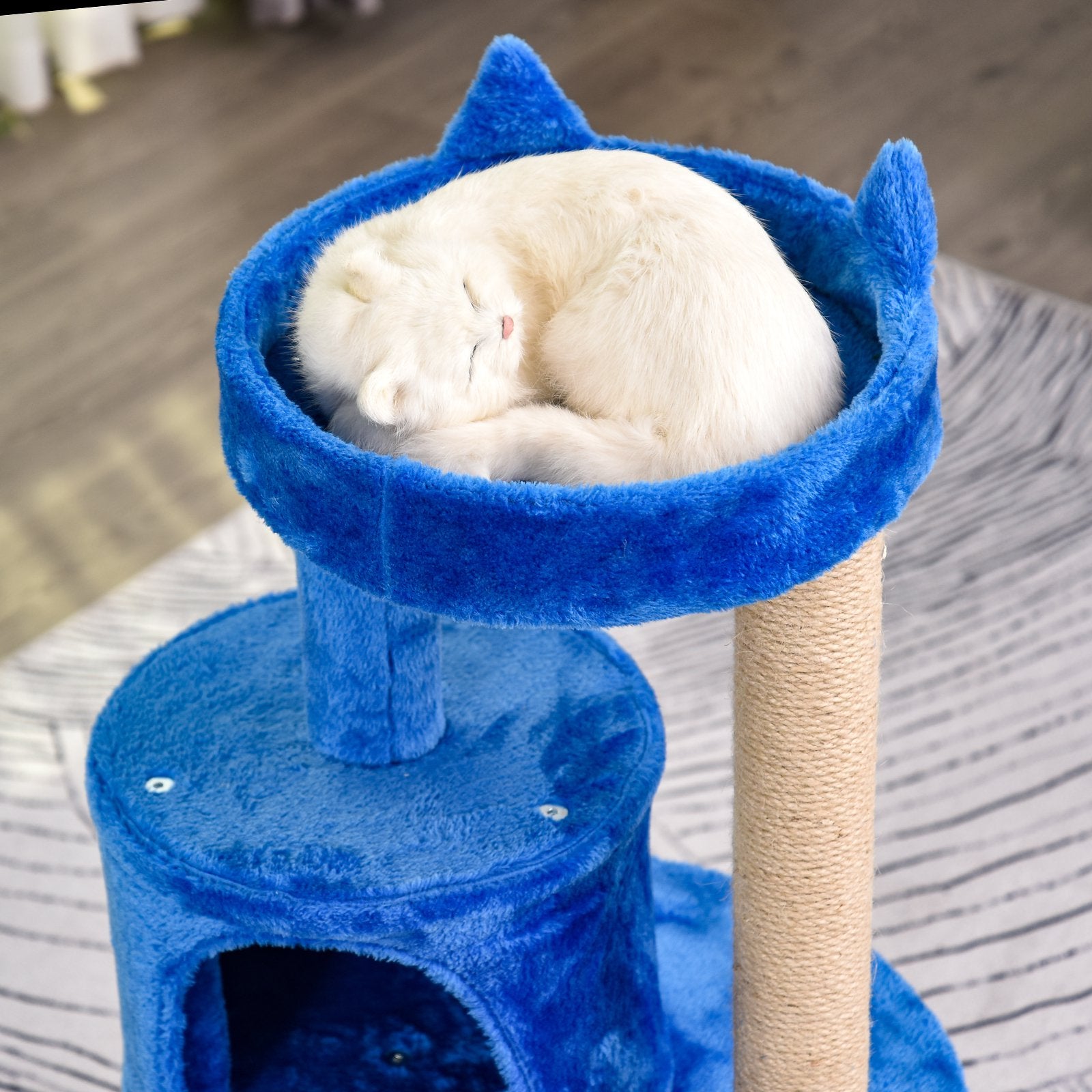 PawHut Cats 3-Tier Sisal Rope Scratching Post w/ Dangle Toy Blue