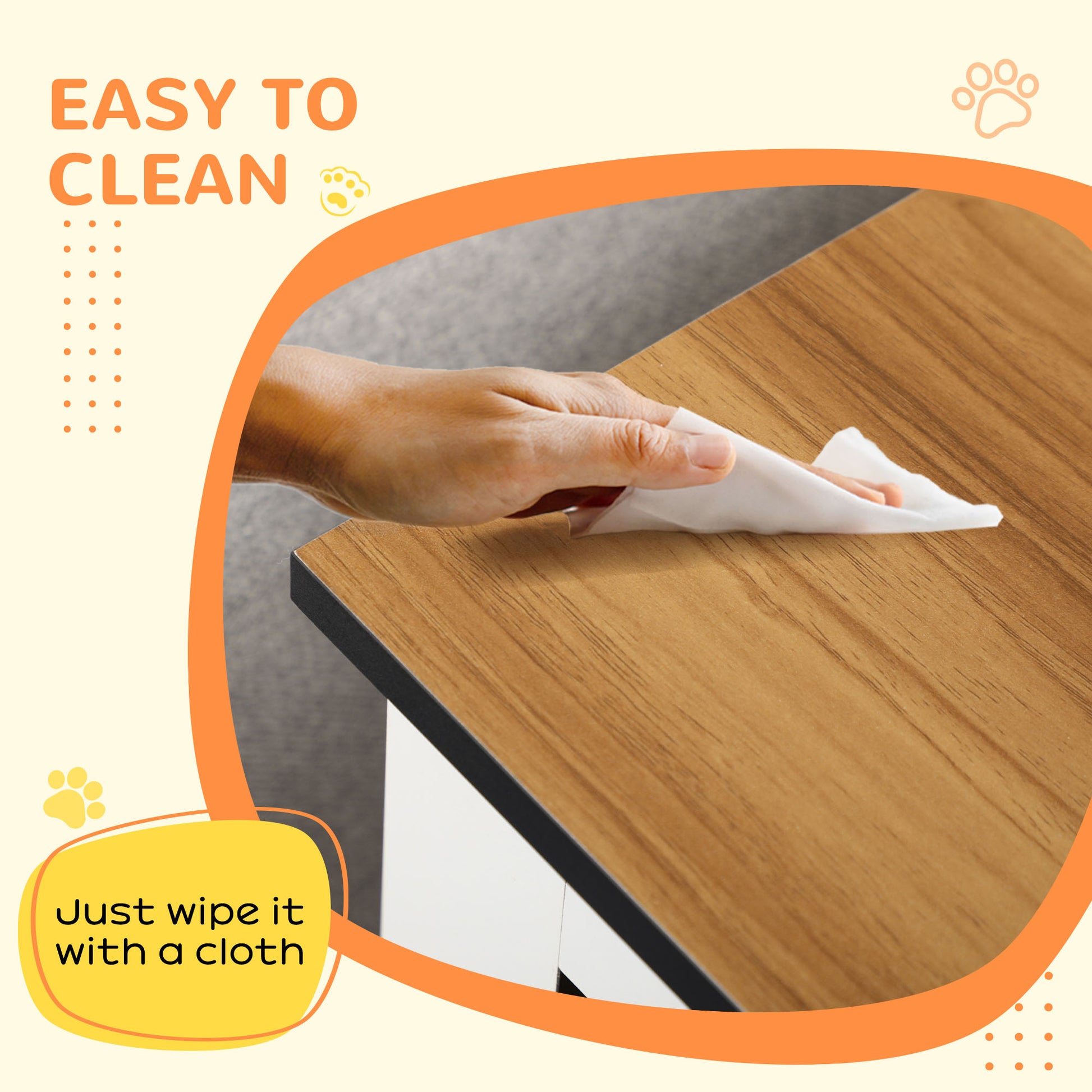 This stylish PawHut dog crate table, which acts as a side table too! Pets have a spot for relaxing, whilst you have a large top for displaying your favourite pieces. Wheels at the bottom for easy movement, you can roll it around the home, keeping pets nearby if needed. Steel bars on the windows for ventilation, whilst the raised floor stops dampness and moisture from seeping through, keeping pets comfortable. Finished with lockable doors for security, pets are safe and secure when inside.