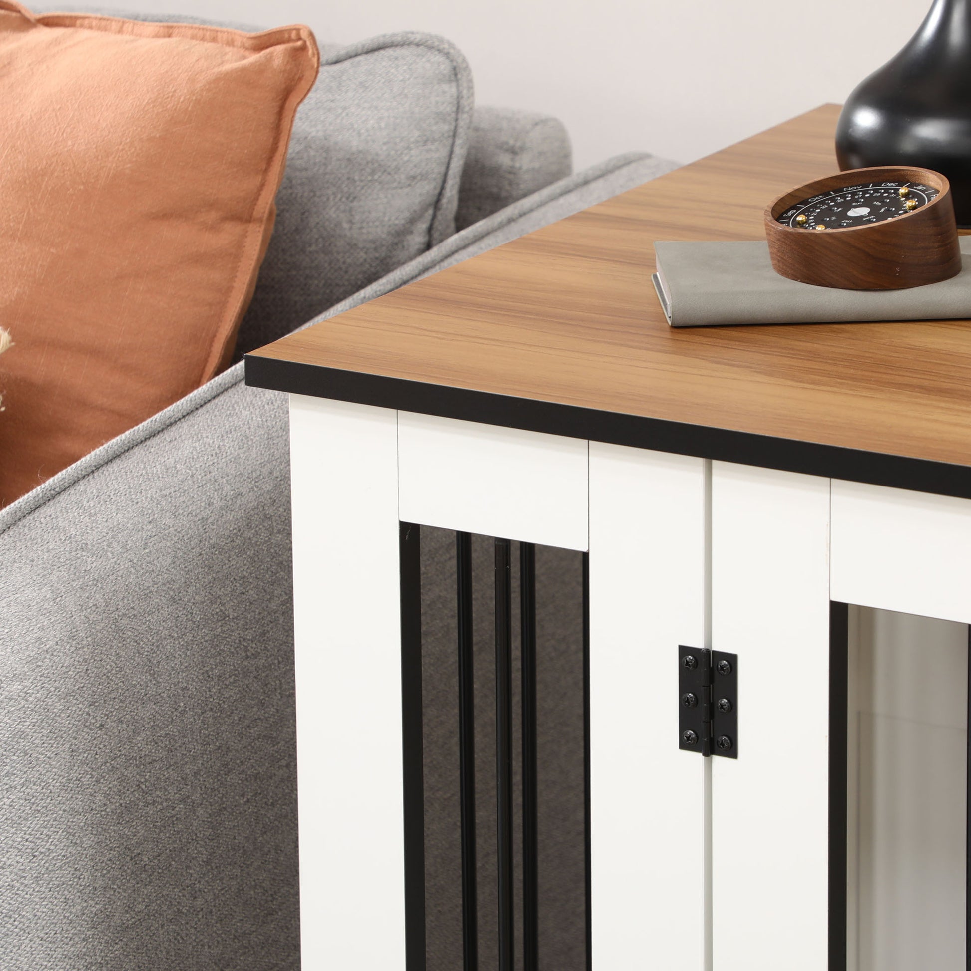 PawHut Dog Crate Furniture with Wheels, Dog Cage End Table for Medium Dogs, with Lockable Door, White, 80 x 60 x 76.5cm