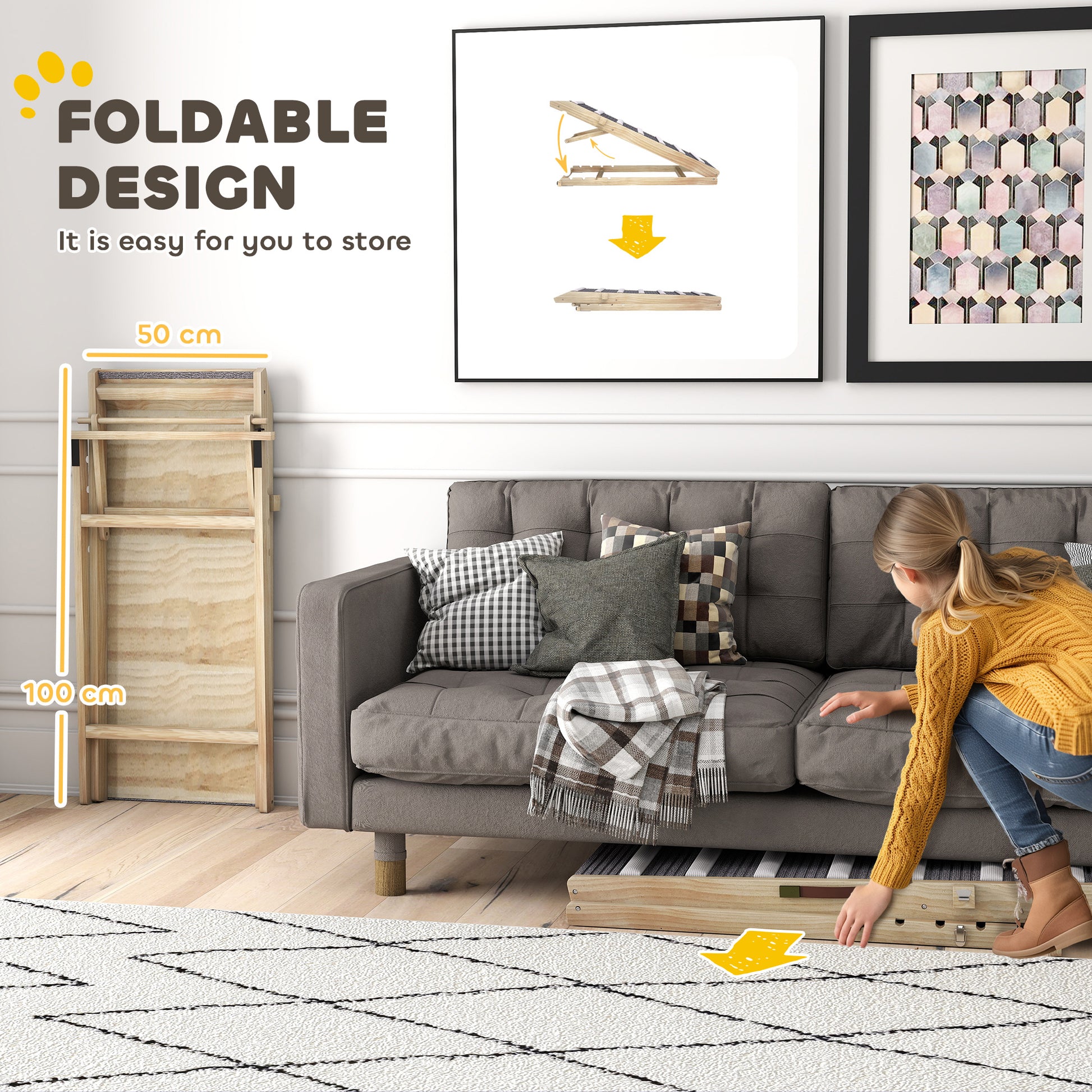 PawHut Dog Ramp for Couch, Adjustable Folding Pet Ramp, 4 Adjustable Height Dog Climbing Ladder, 35/43/47/50 cm Height