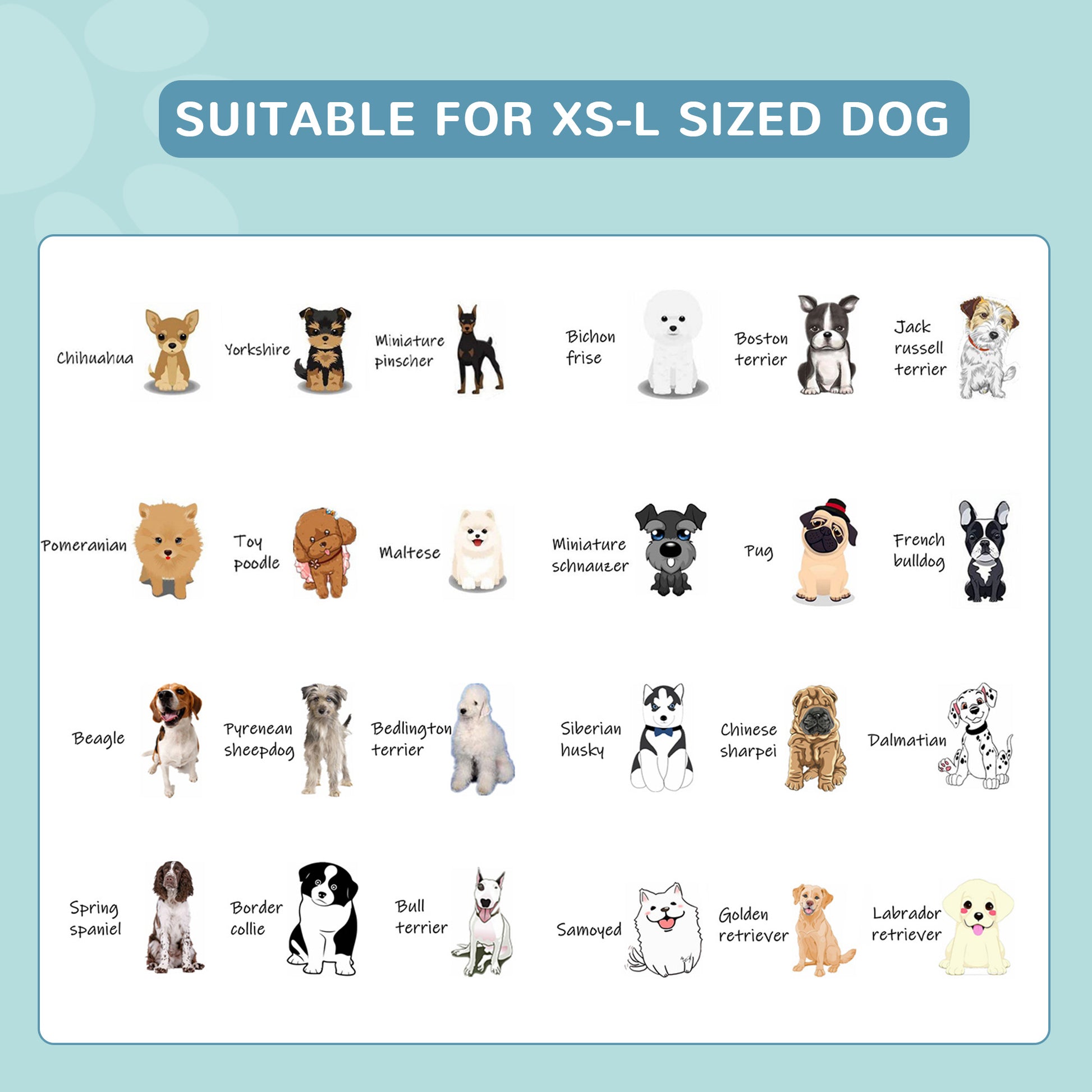 - Suitable for XS, S, M, L sized dogs