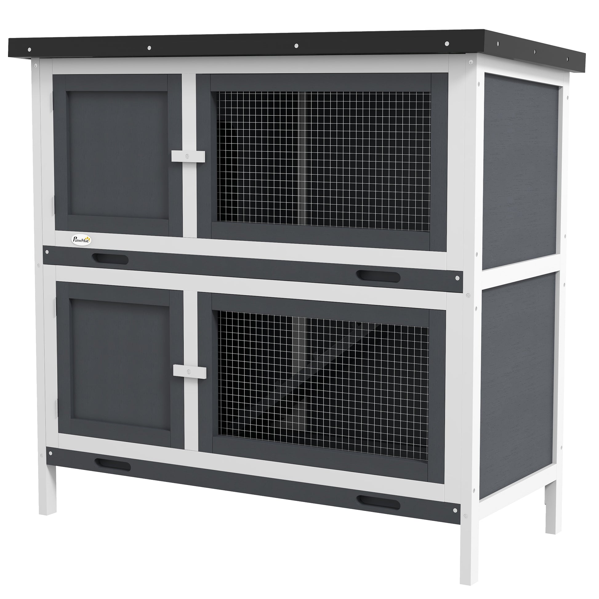 PawHut Double Decker Rabbit Hutch 2 Tier Guinea Pig House Pet Cage Outdoor with Sliding-out Tray, 100x47x91cm, Grey