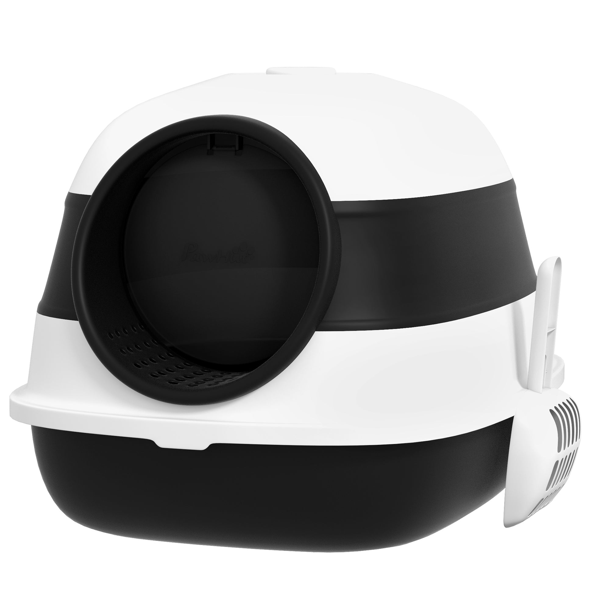 PawHut Foldable Cat Litter Tray with Lid, Deodorant, Scoop, Black