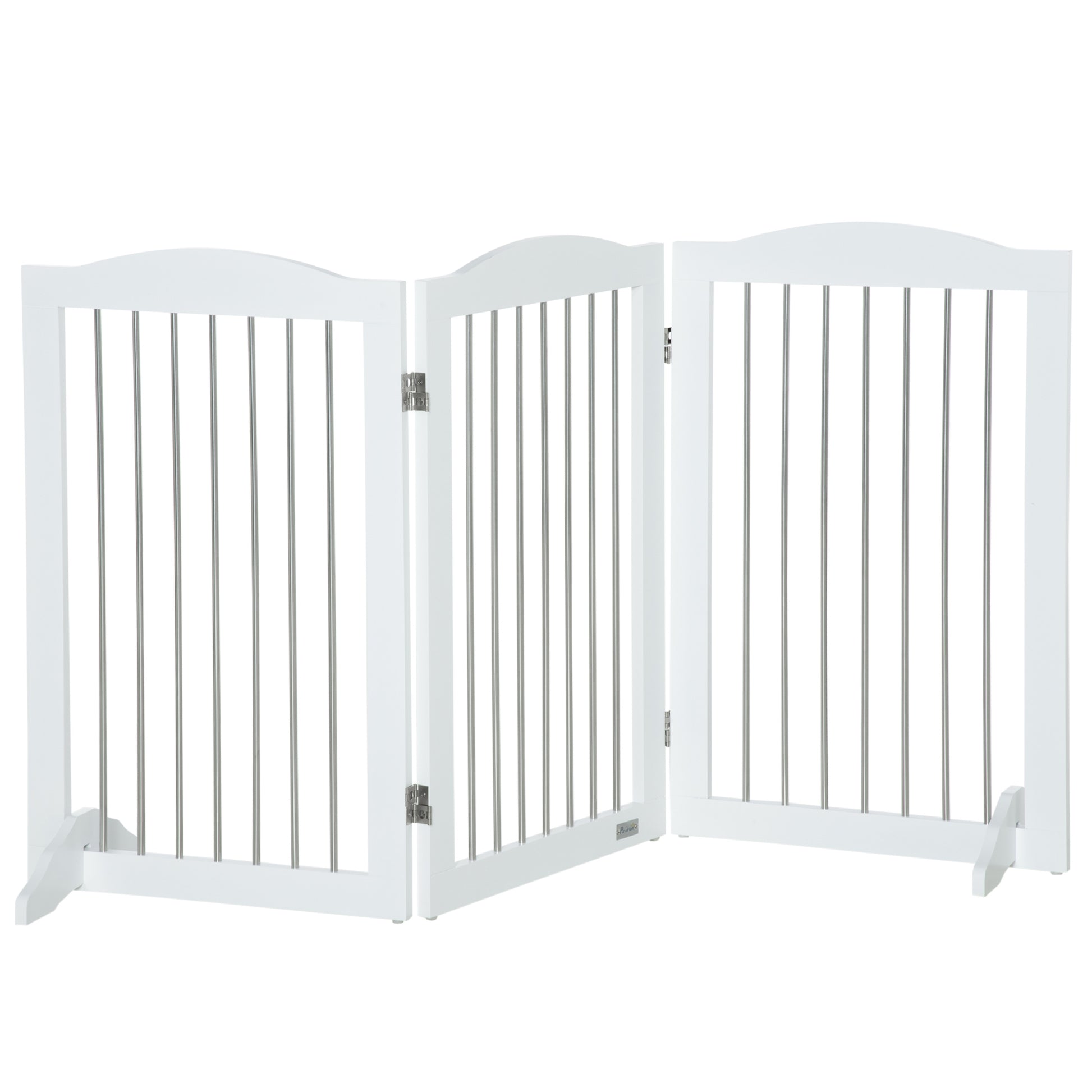 PawHut Foldable Dog Gate, Wooden Freestanding Pet Gate with 2 Support Feet, Dog Barrier for Doorways, Stairs, Halls - White