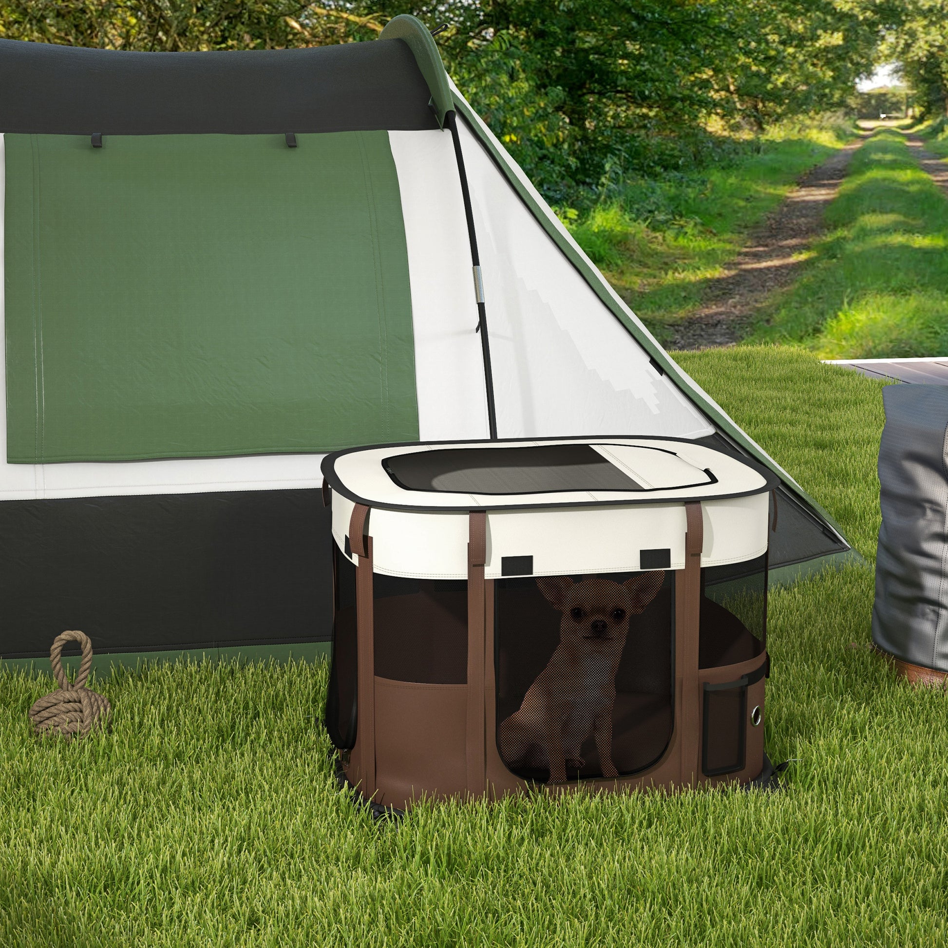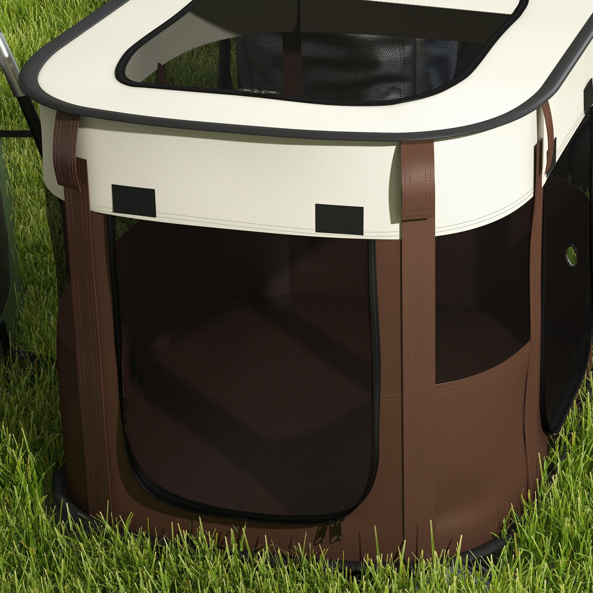 PawHut Foldable Dog Pen with Storage Bag for Indoor/Outdoor Use, Brown